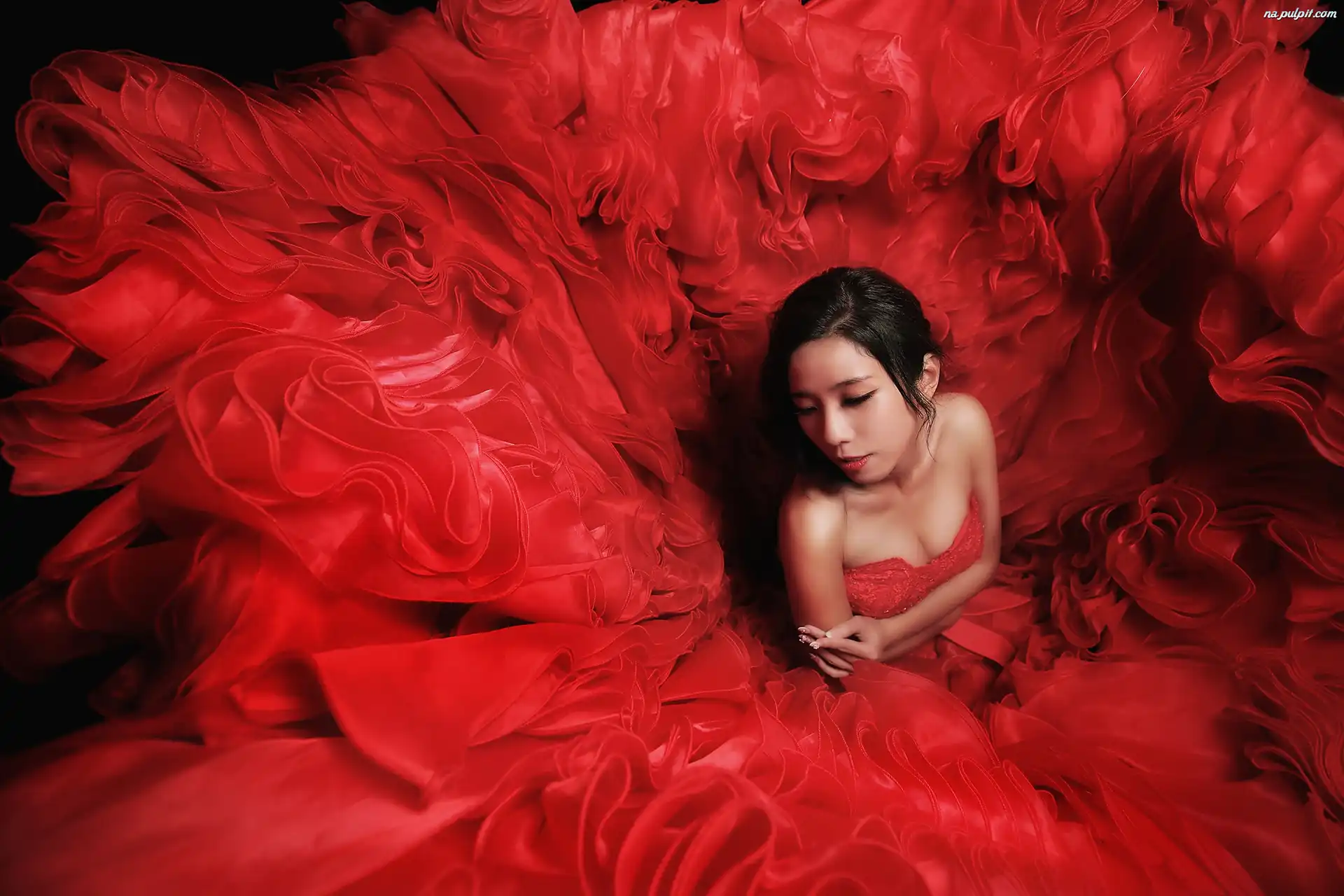 Suknia, Azjatka, Kobieta, Czerwona Na Pulpit