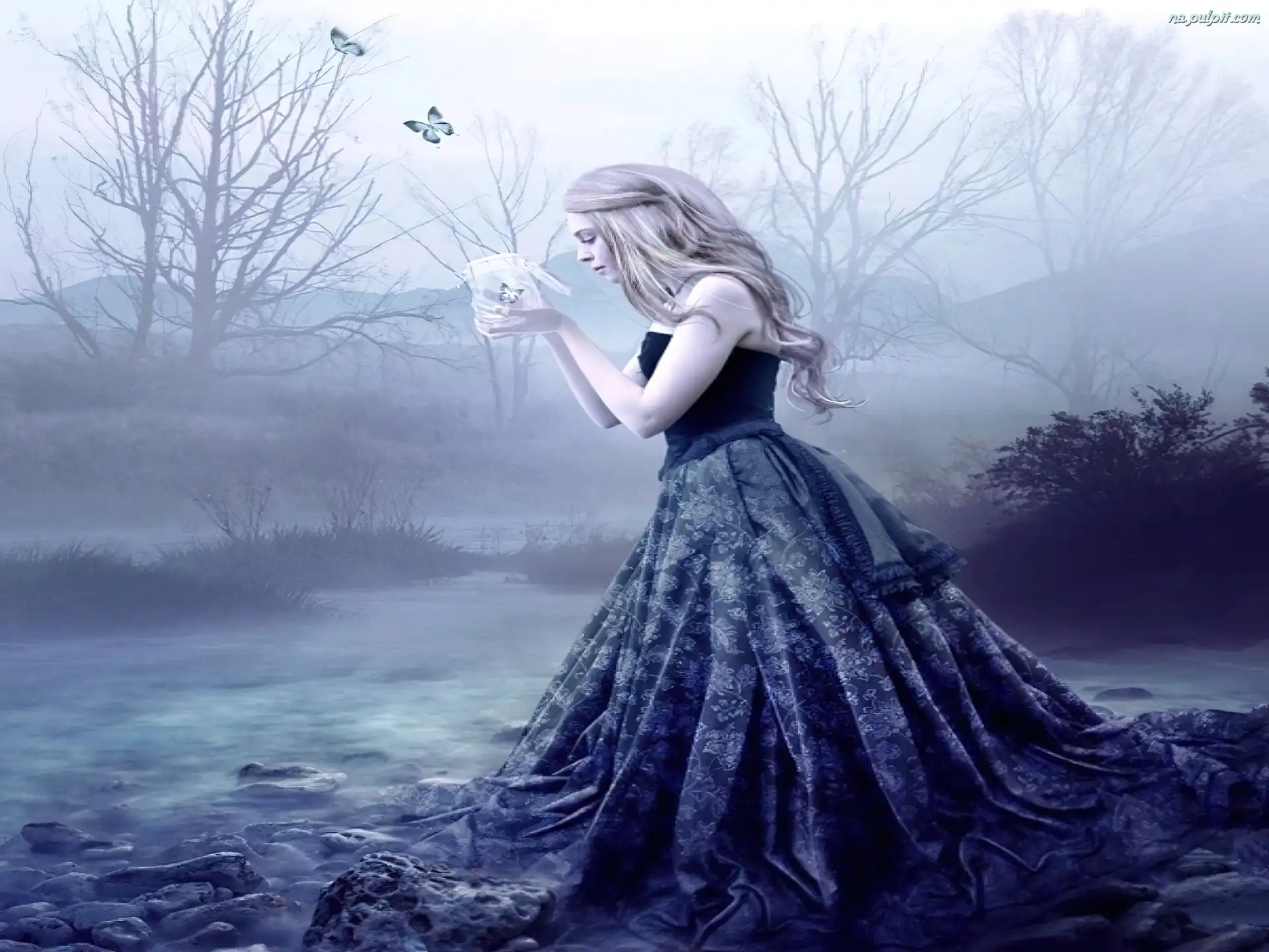 Suknia, Woda, Motyle, Kobieta, Długa Na Pulpit