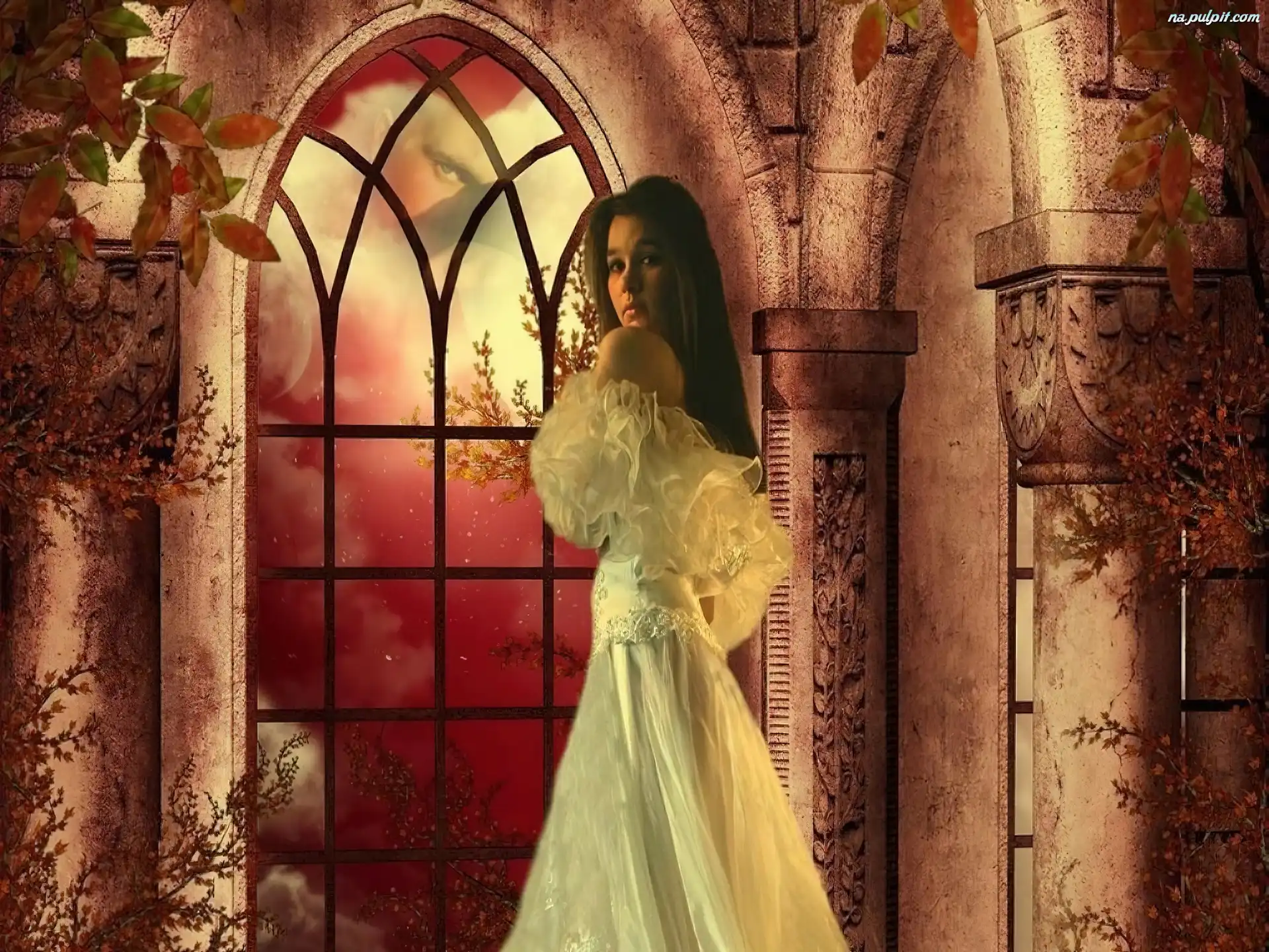 Suknia, Okno, Kobieta, Biała Na Pulpit