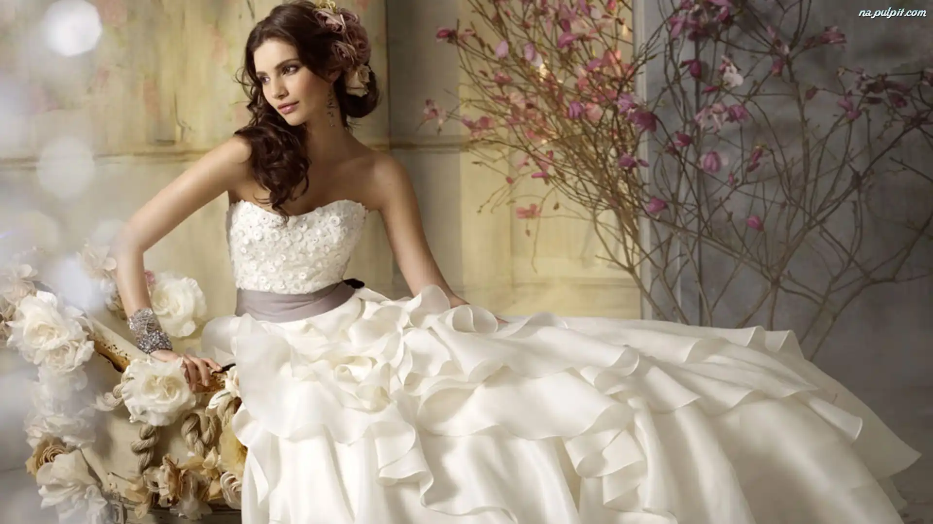 Suknia, Kobieta, Uśmiechnięta, Biała Na Pulpit