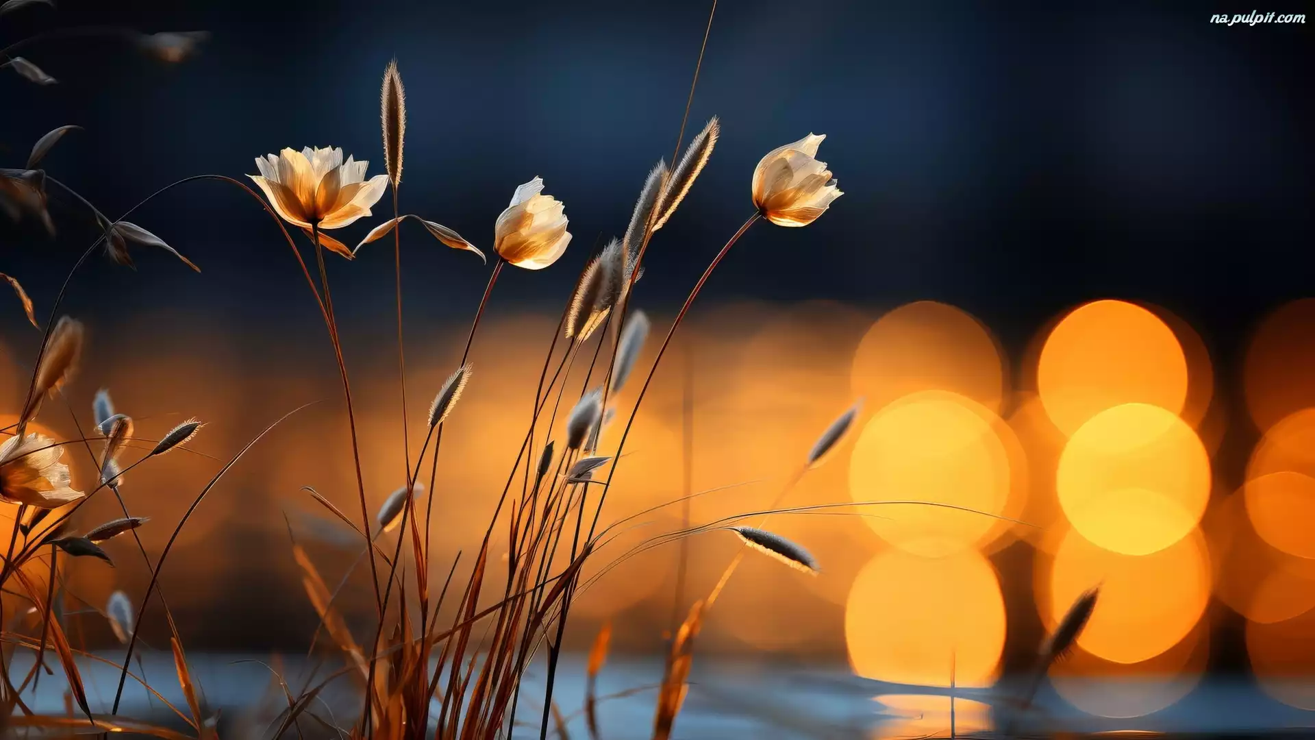 Kwitnąca, Trawa, Odbite, Światła Na Pulpit