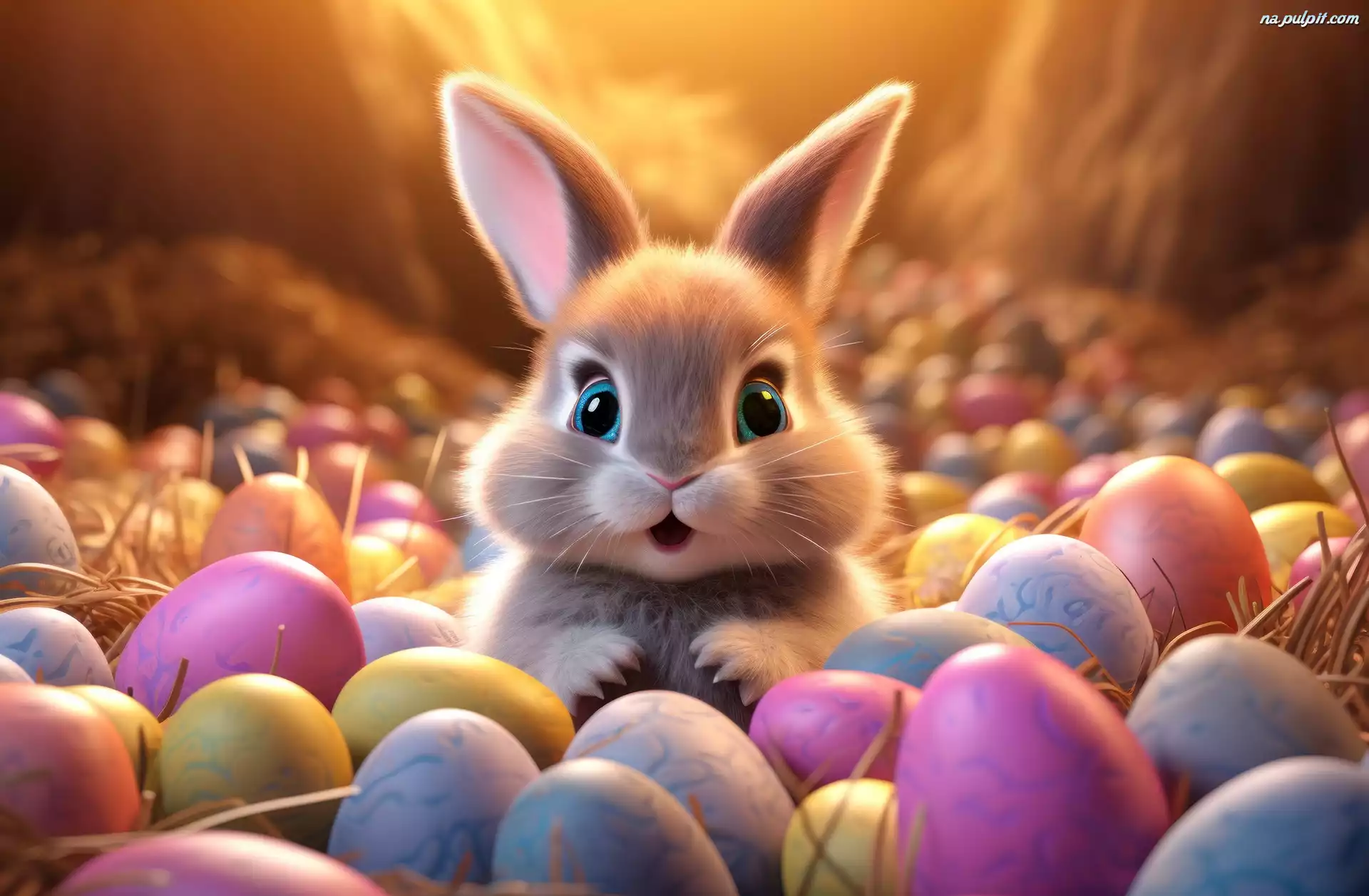 Wielkanoc, Kolorowe, Królik, Światło, Pisanki, Grafika