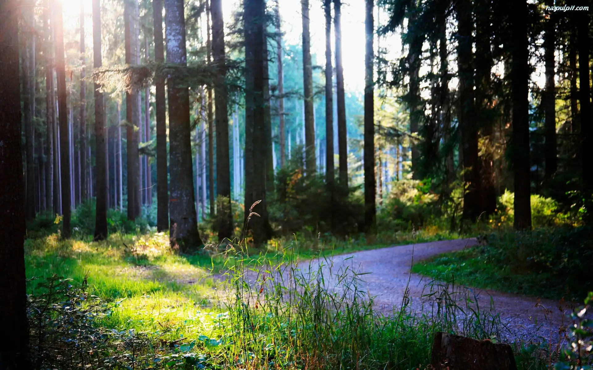Swiatło, Zakręt, Sćieżka, Las, Przebijające