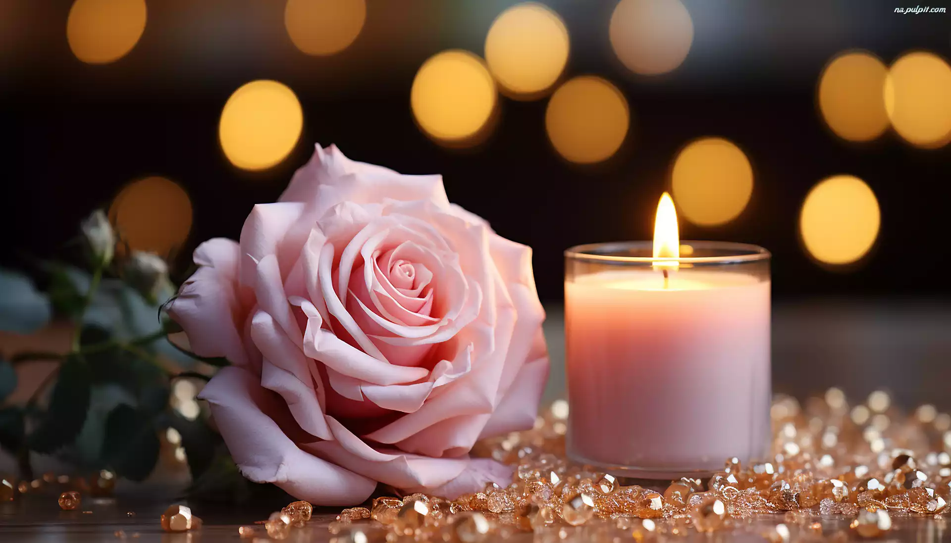Kompozycja, Różowa, Róża, Świeczka