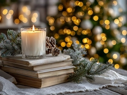 Szyszki, Świeca, Gałązki, Świerk, Książki, Grafika AI
