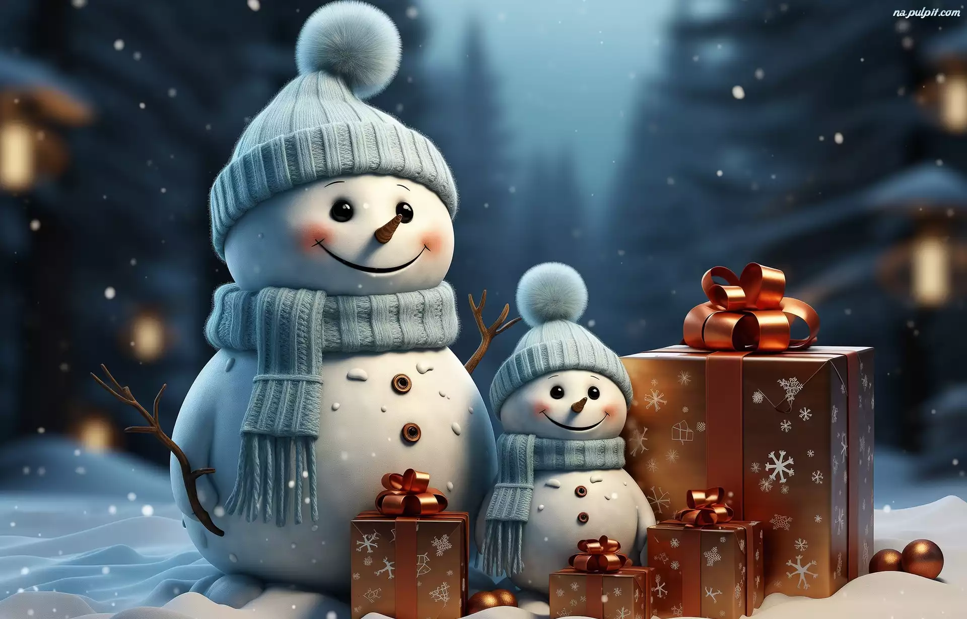 Grafika, Zima, Prezenty, Święta, Bałwanki, Kompozycja Na Pulpit