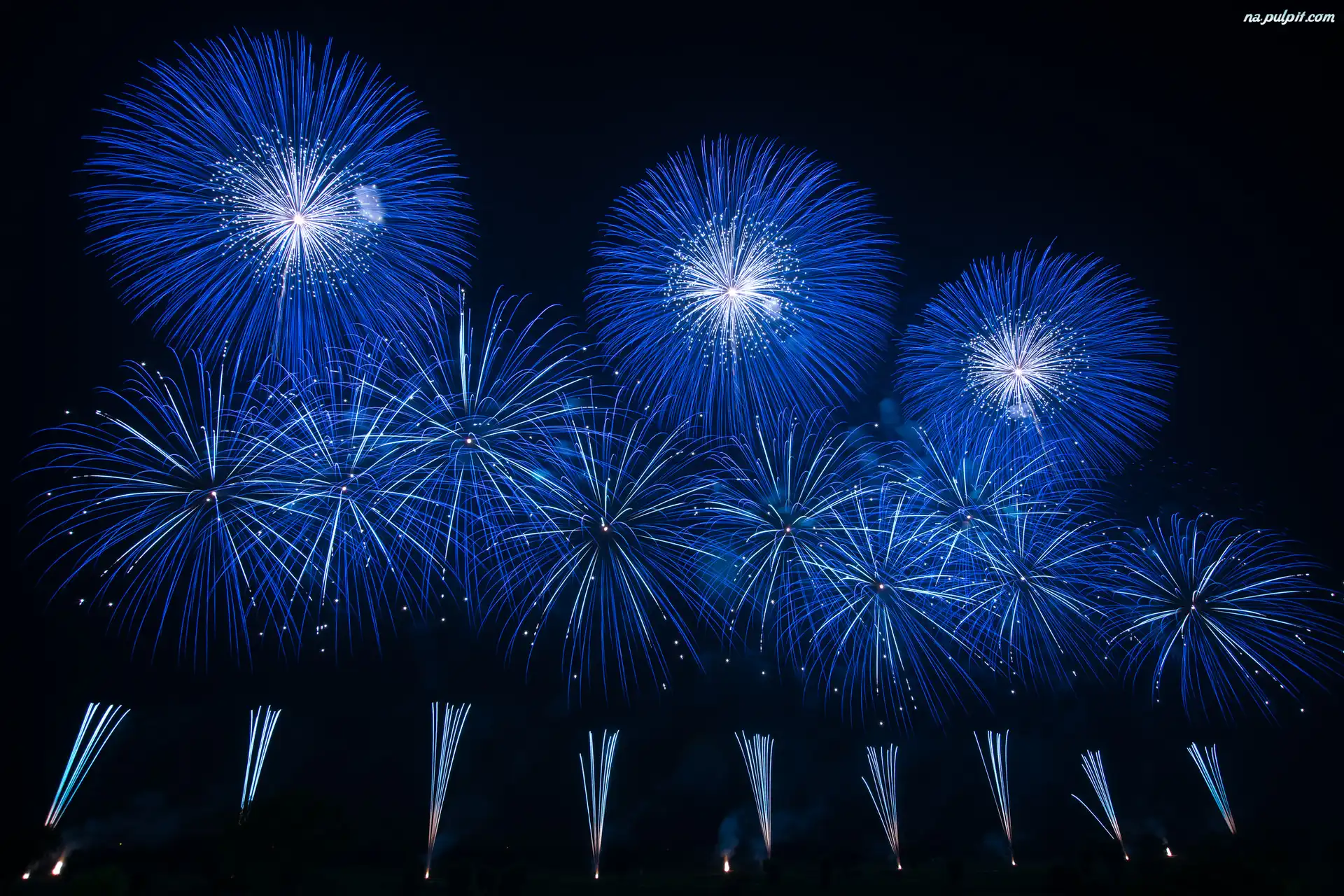 Sylwester, Sztuczne ognie, Niebieskie, Fajerwerki Na Pulpit