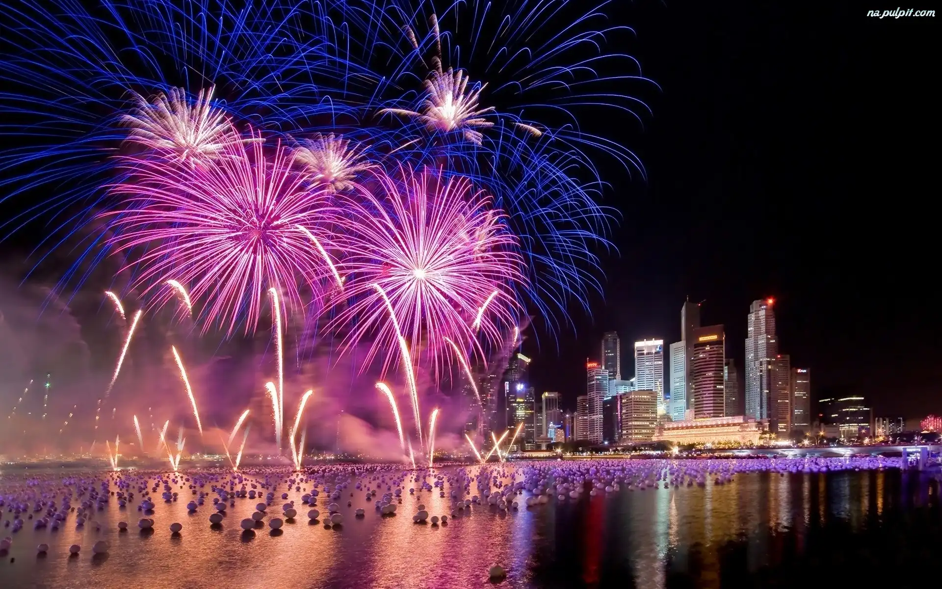 Sylwester, Fajerwerki, Rzeka, Lampiony Na Pulpit