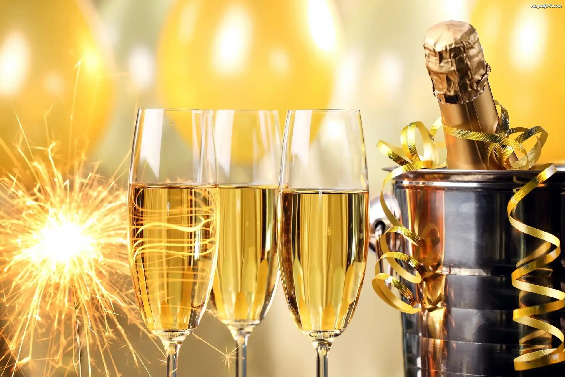 Sylwester, Sztuczne, Kieliszki, Szampan, Ognie