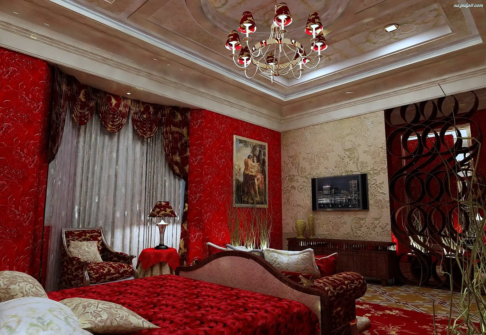 Sypialnia, Wnętrze, Dom, Stylowa