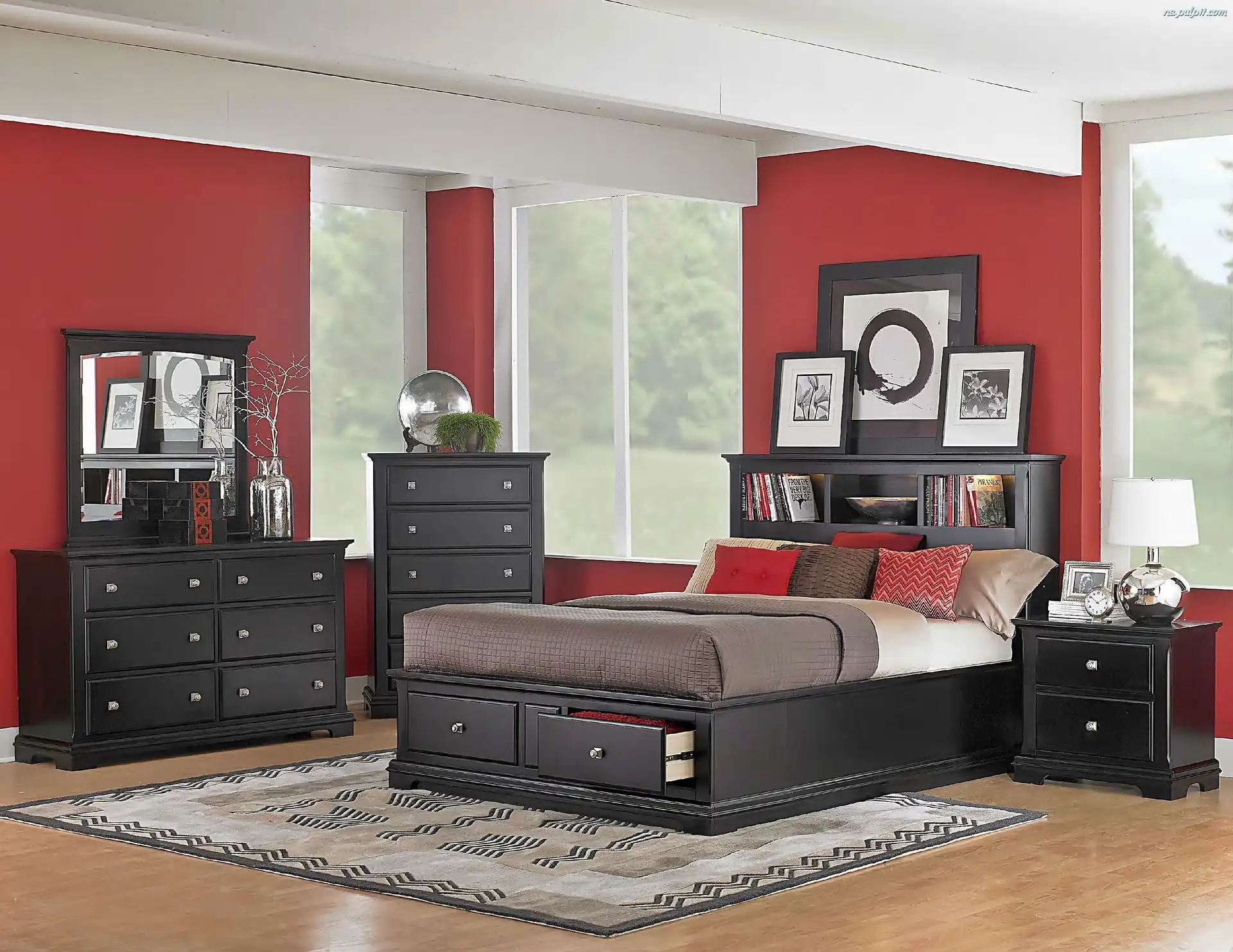 Sypialnia, Czarno, Nowoczesna, Czerwona Na Pulpit