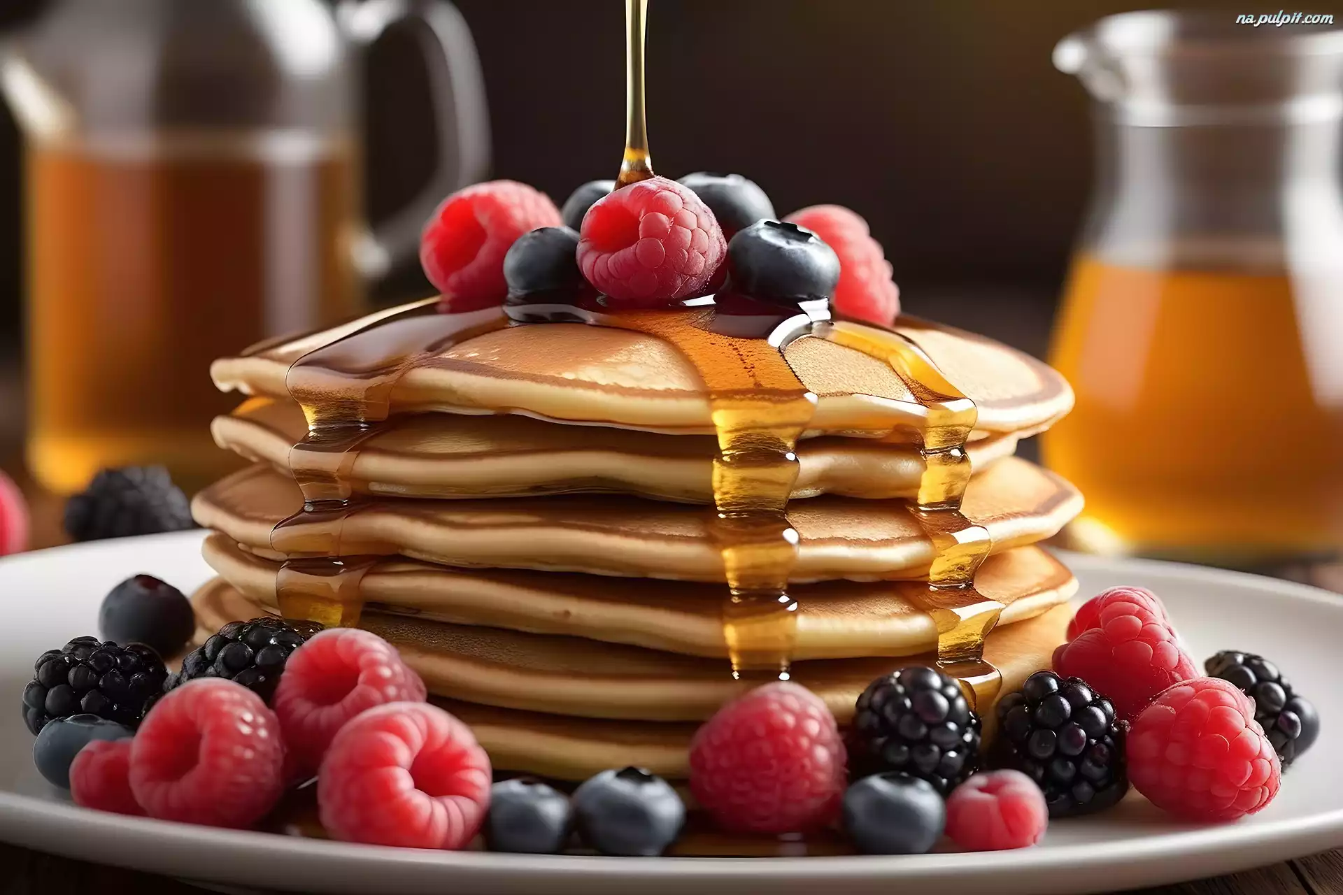 Śniadanie, Naleśniki, Jeżyny, Syrop, Maliny, Grafika
