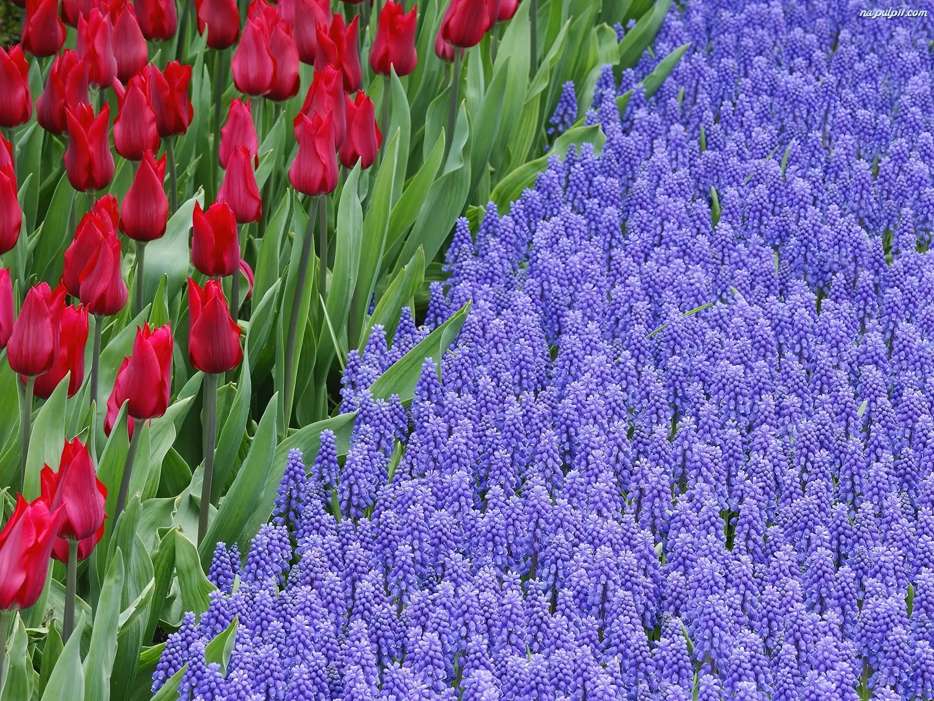 Szafirki, Czerwone, Kwiaty, Piękne, Tulipany Na Pulpit