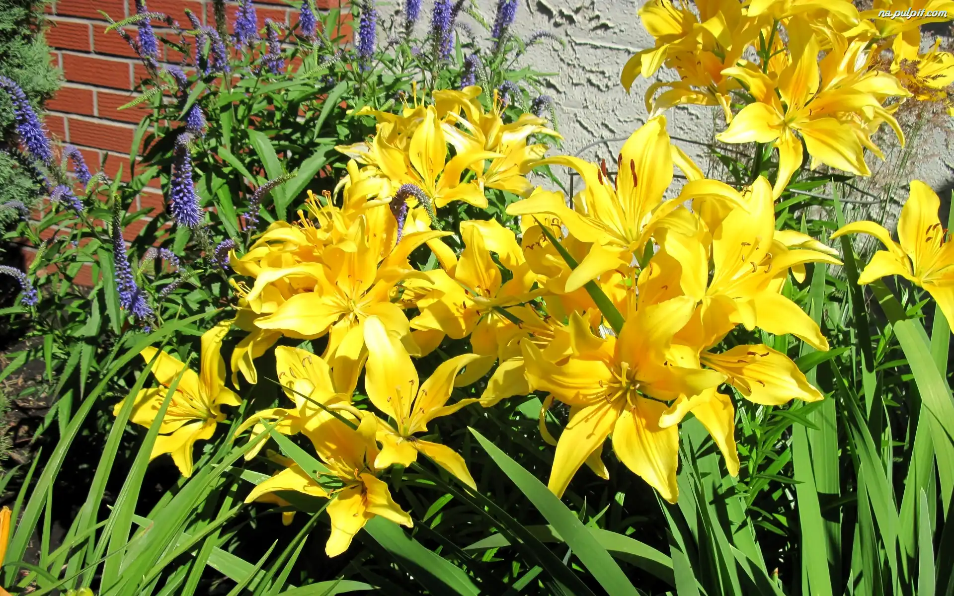 Szafirki, Lilie, Zółte, Niebieskie Na Pulpit
