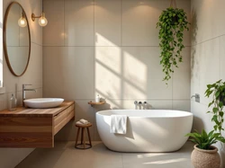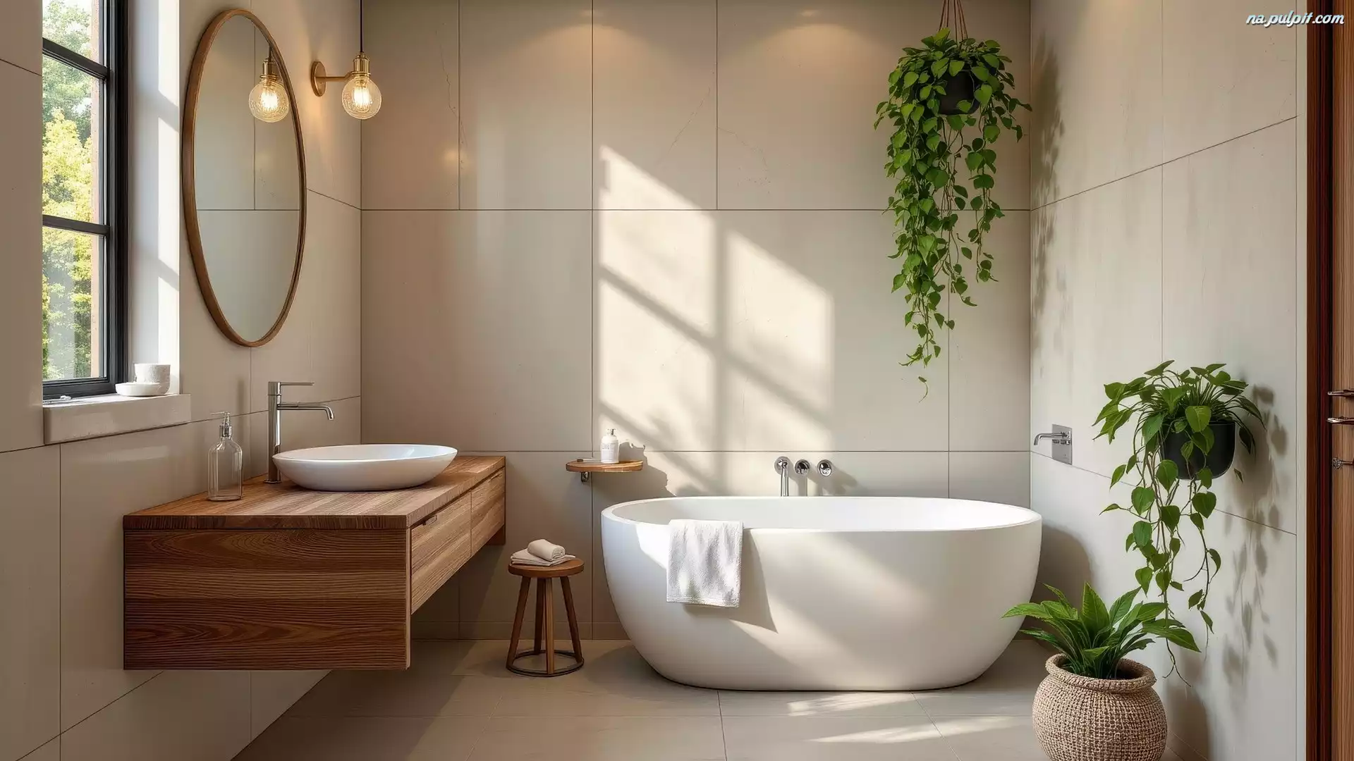 Lustro, Umywalka, Kwiaty, Łazienka, Kinkiet, Okno, Wanna, Szafka Na Pulpit