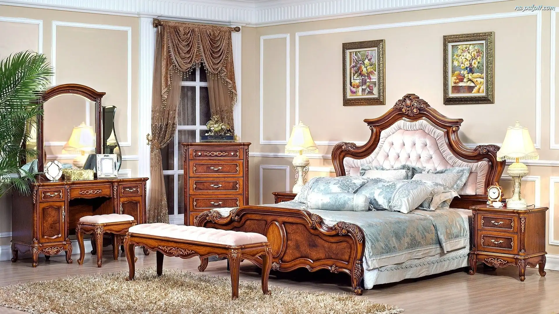 Szafki, Łóżko, Sypialnia, Romantyczna, Toaletka Na Pulpit