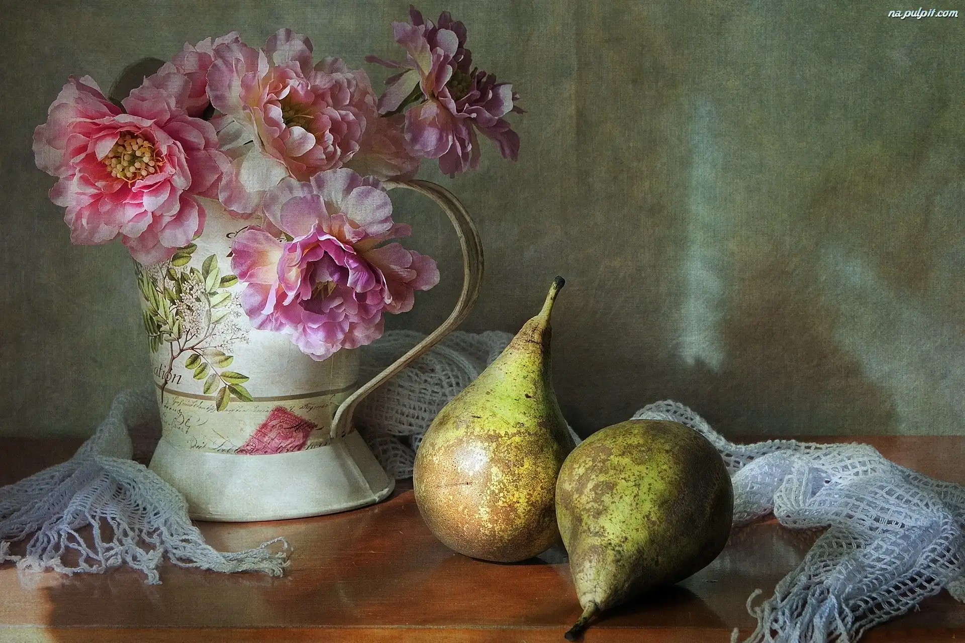 Szal, Różowe, Gruszki, Dzban, Kwiaty Na Pulpit