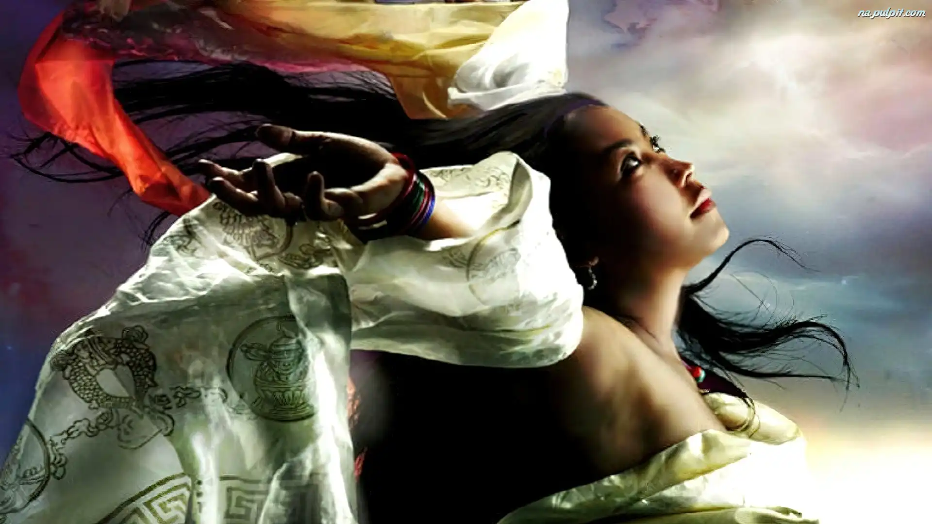 Szal, Wiatr, Kobieta, Kolorowy Na Pulpit