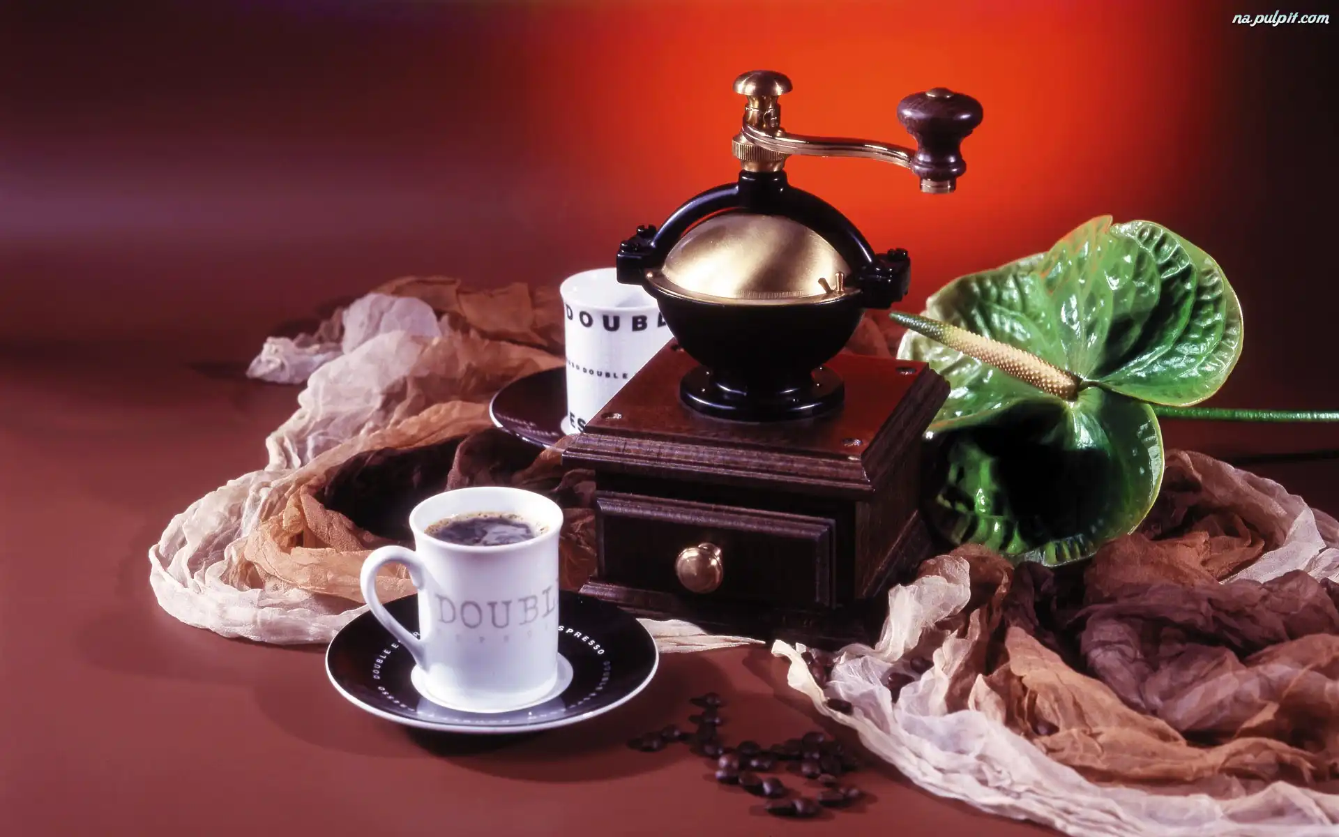 Szal, Filiżanki, Kawa, Młynek, Kwiat