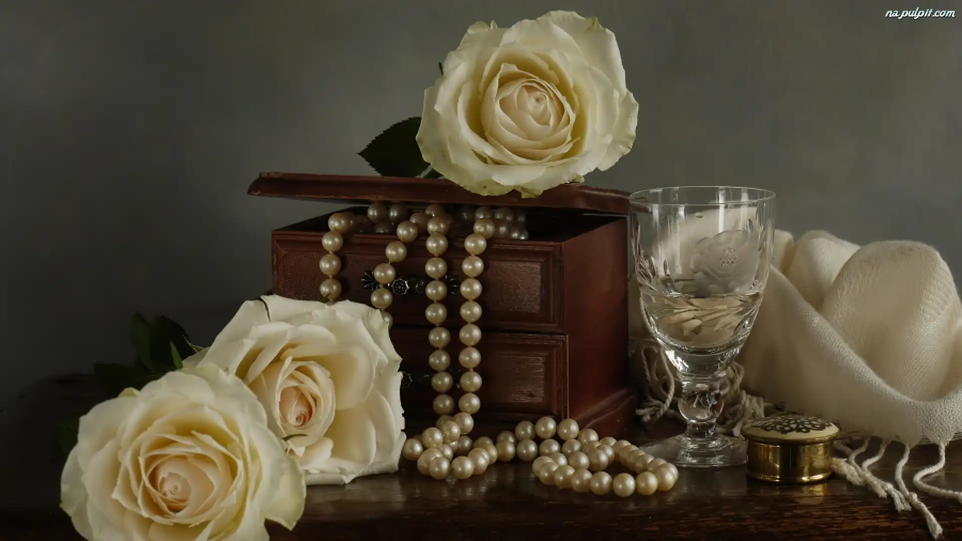 Szal, Perły, Róże, Szkatułka