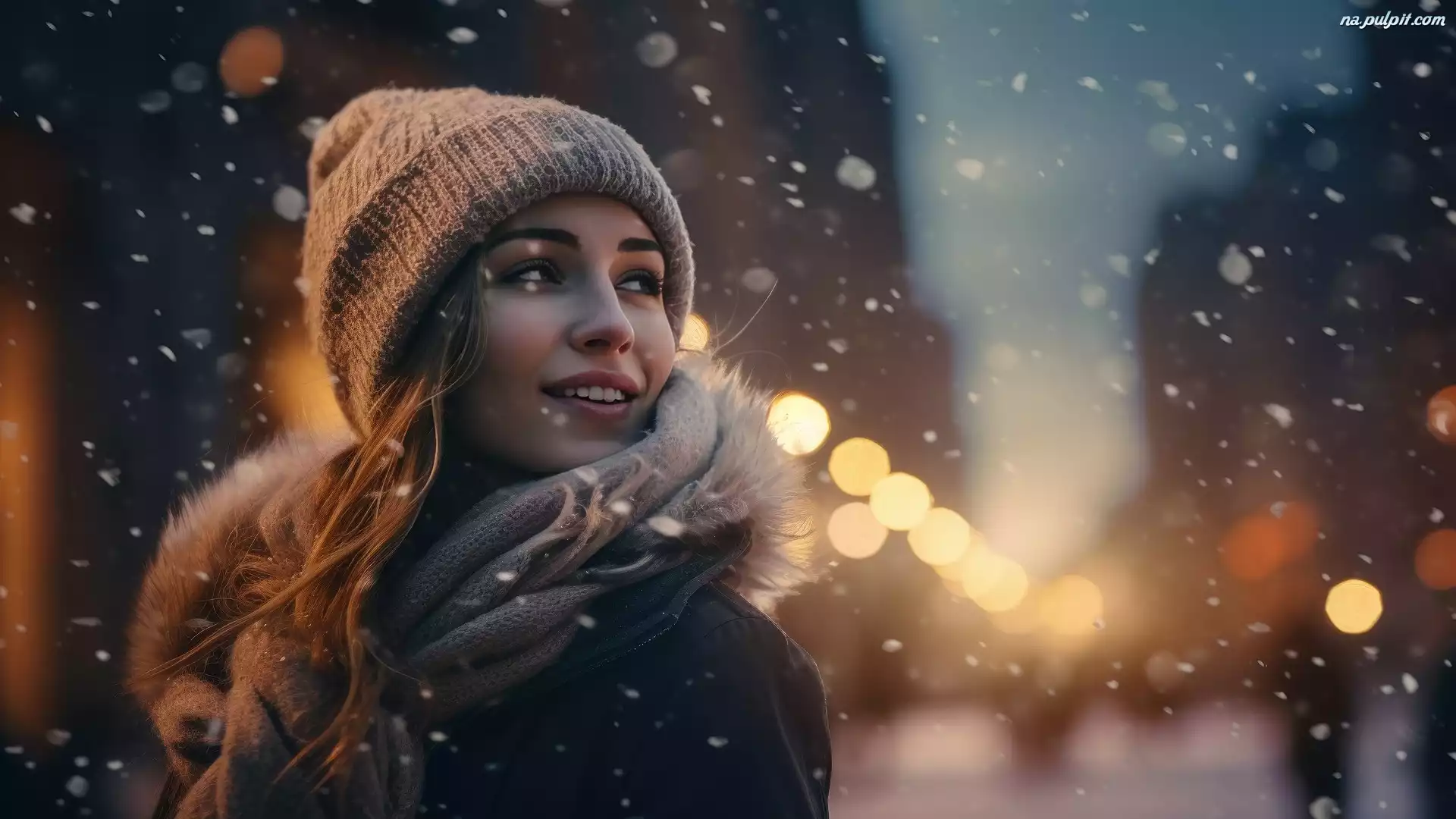PadajÄ…cy, Zima, Czapka, Szal, Kobieta, Åšnieg Na Pulpit
