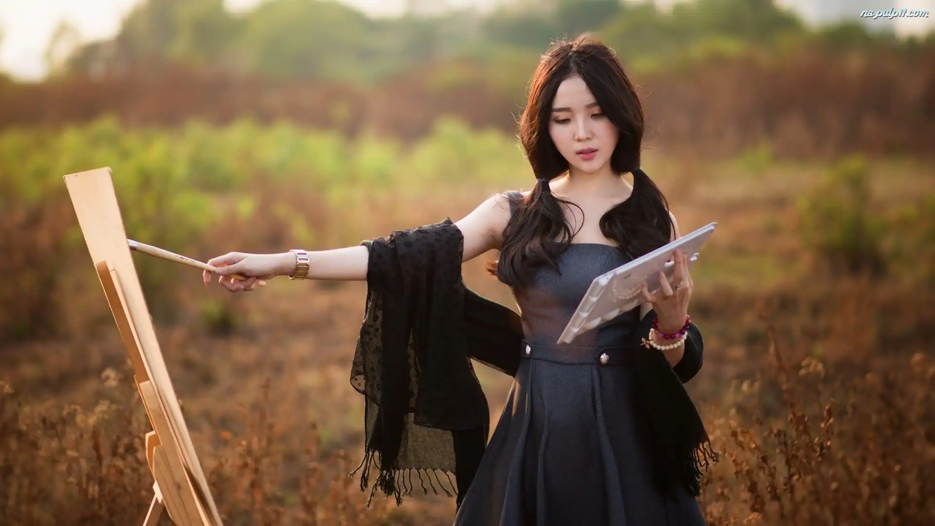 Sztaluga, Szal, Pędzel, Paleta, Biżuteria, Dziewczyna, Malarska Na Pulpit