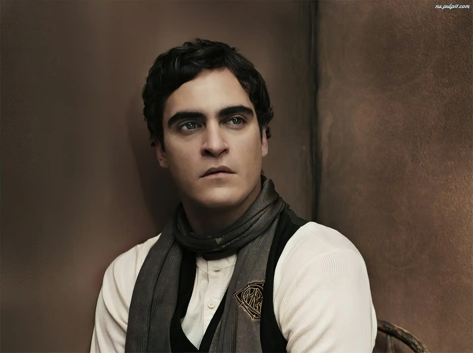 szalik, Joaquin Phoenix, ciemne włosy Na Pulpit