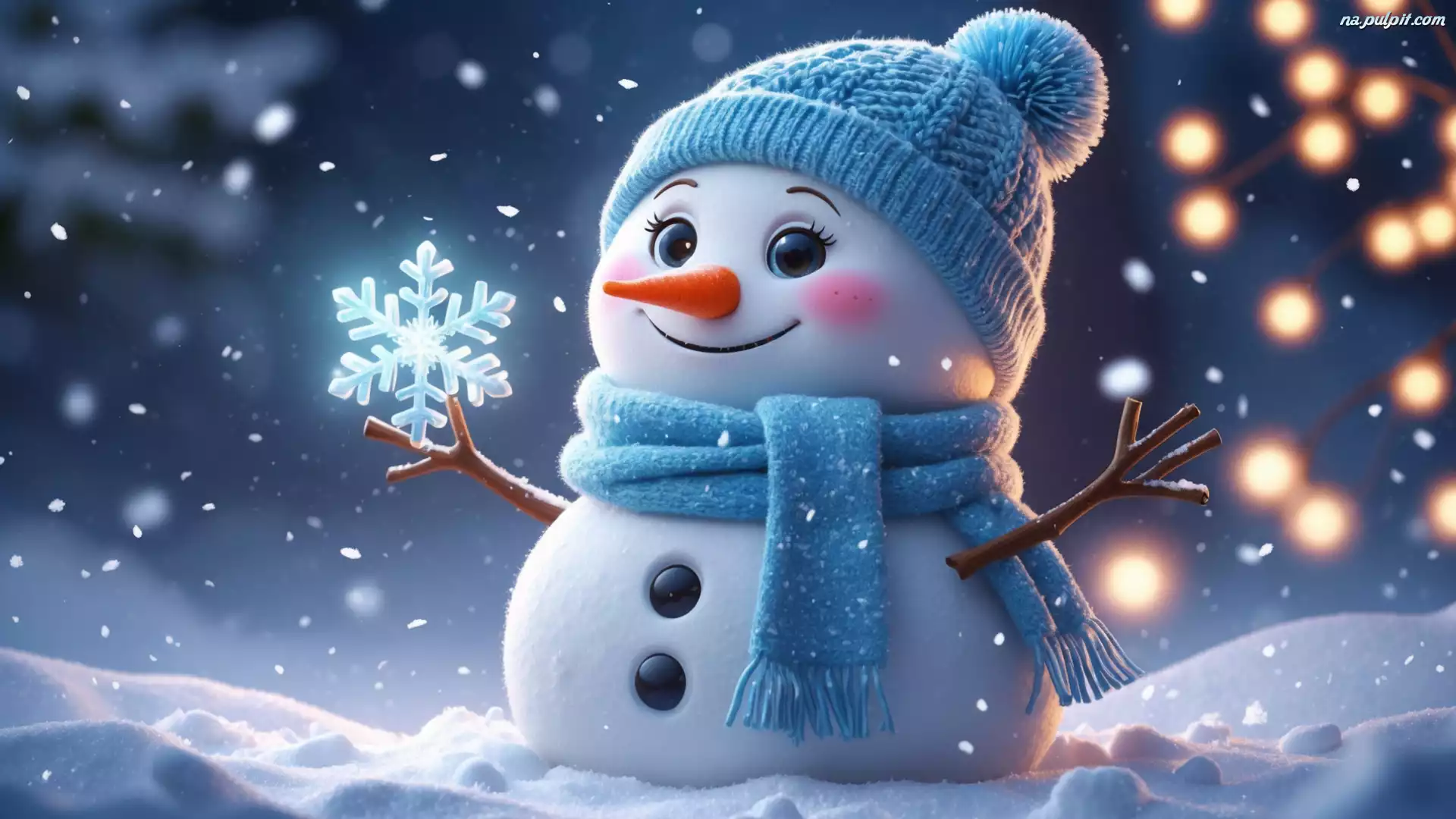 Uśmiech, Czapka, Śnieżynka, Zima, Światełka, Śnieg, Bałwan, Szalik Na Pulpit