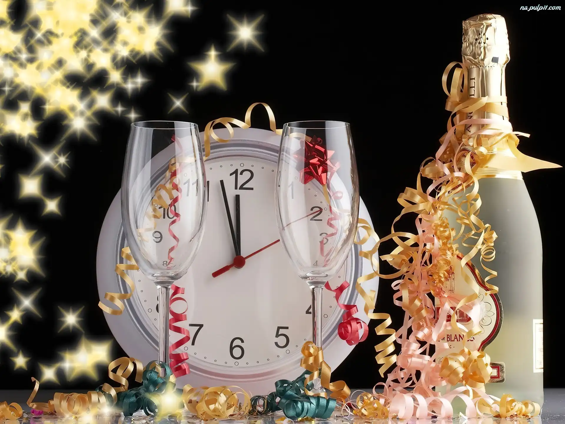 Szampan, Nowy, Sylwester, Dekoracja, Rok