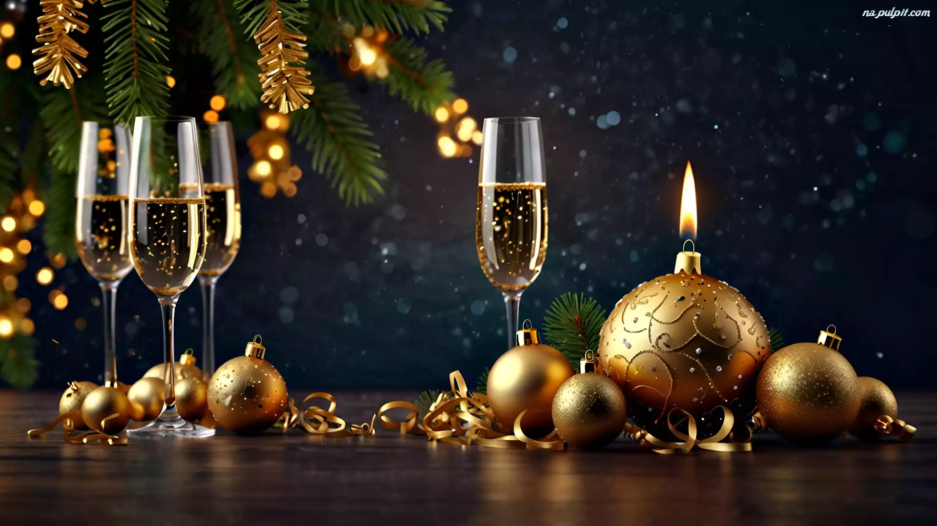 Bombki, Boże Narodzenie, Szampan, Grafika, Kieliszki Na Pulpit