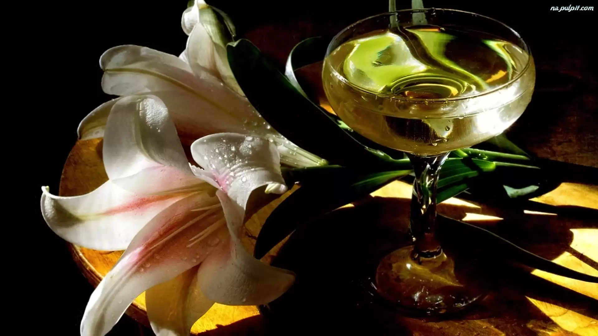 Szampan, Lilie, Białe, Kwiaty, Kieliszek Na Pulpit