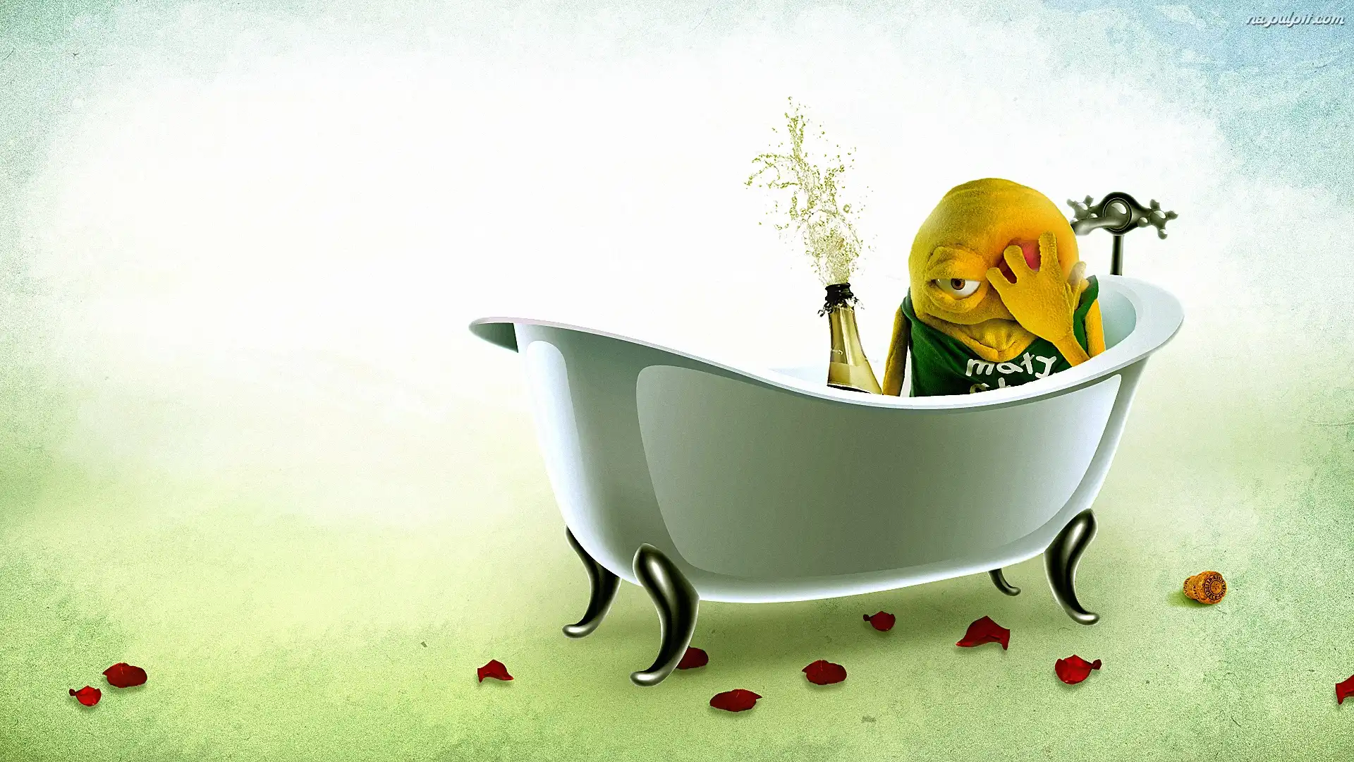 Szampan, Głód, Mały, Maskotka, Wanna Na Pulpit