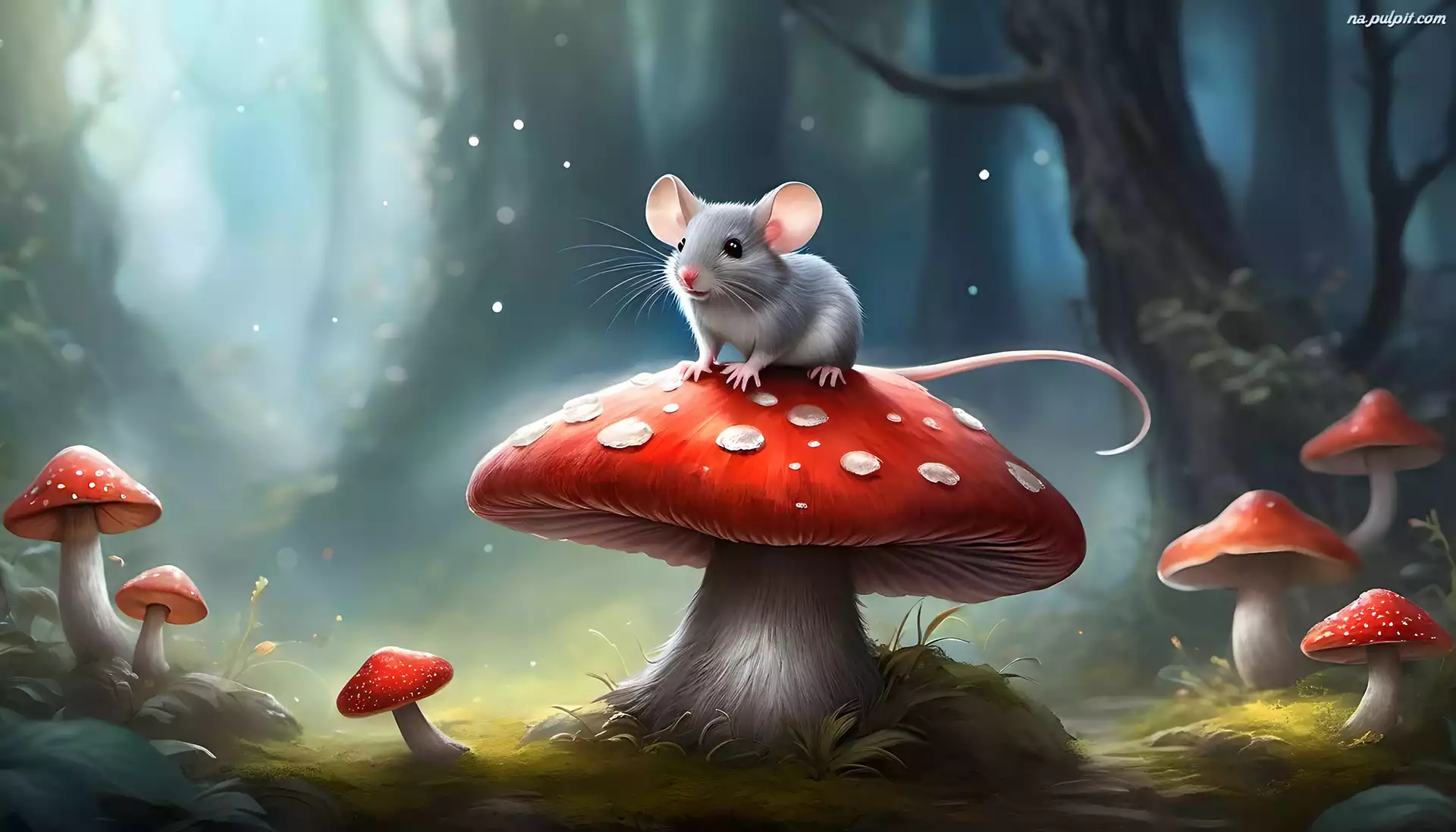 Grzyby, Szara, Myszka, Grafika, Muchomory Na Pulpit