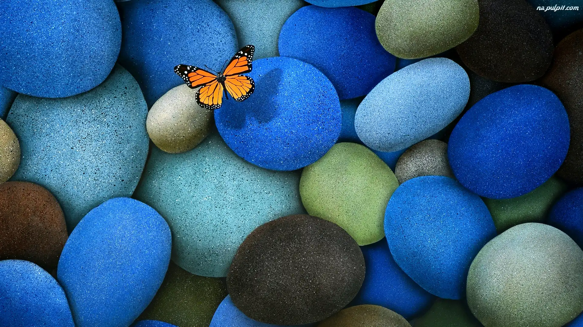 Szare, Pomarańczowy, Motyl, Brązowe, Niebieskie , Kamienie Na Pulpit