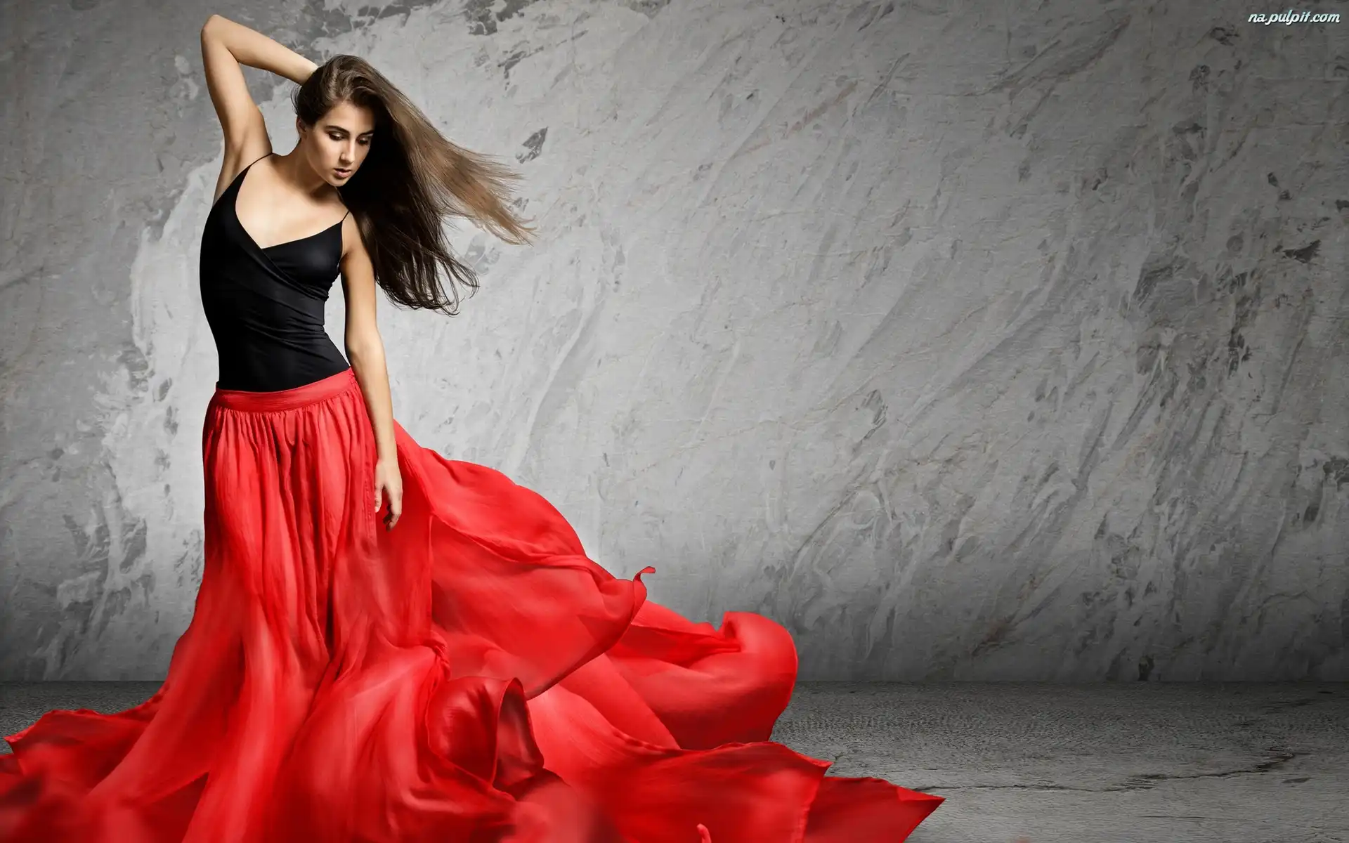 Szatynka, Czarna, Bluzka, Czerwona, Kobieta, Spódnica