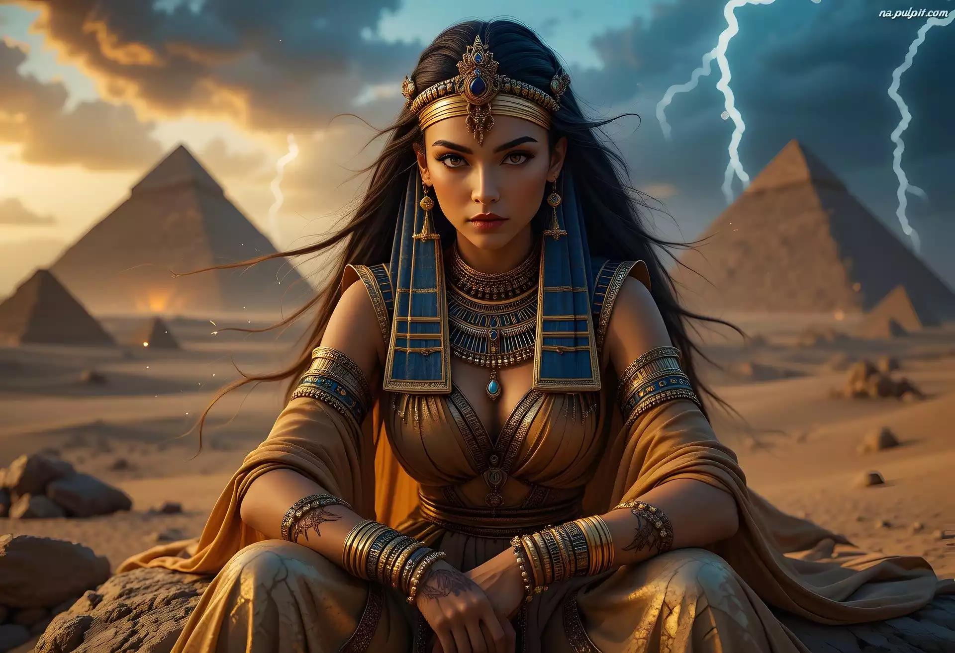 Biżuteria, Kobieta, Długowłosa, Szatynka, Egipcjanka, Piramidy Na Pulpit
