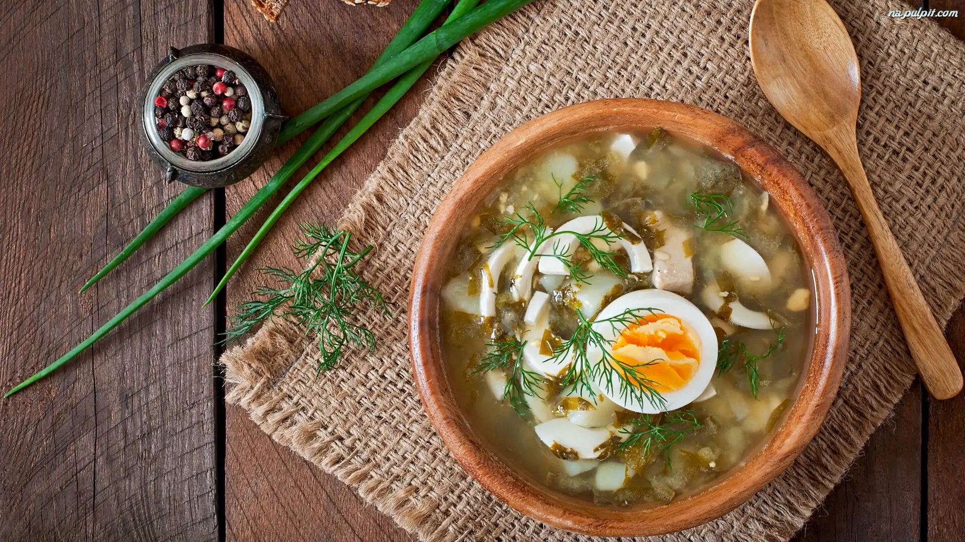 Serwetka, Szczawiowa, Jajko, Szczypiorek, Pieprz, Miska, Zupa, Łyżka Na Pulpit