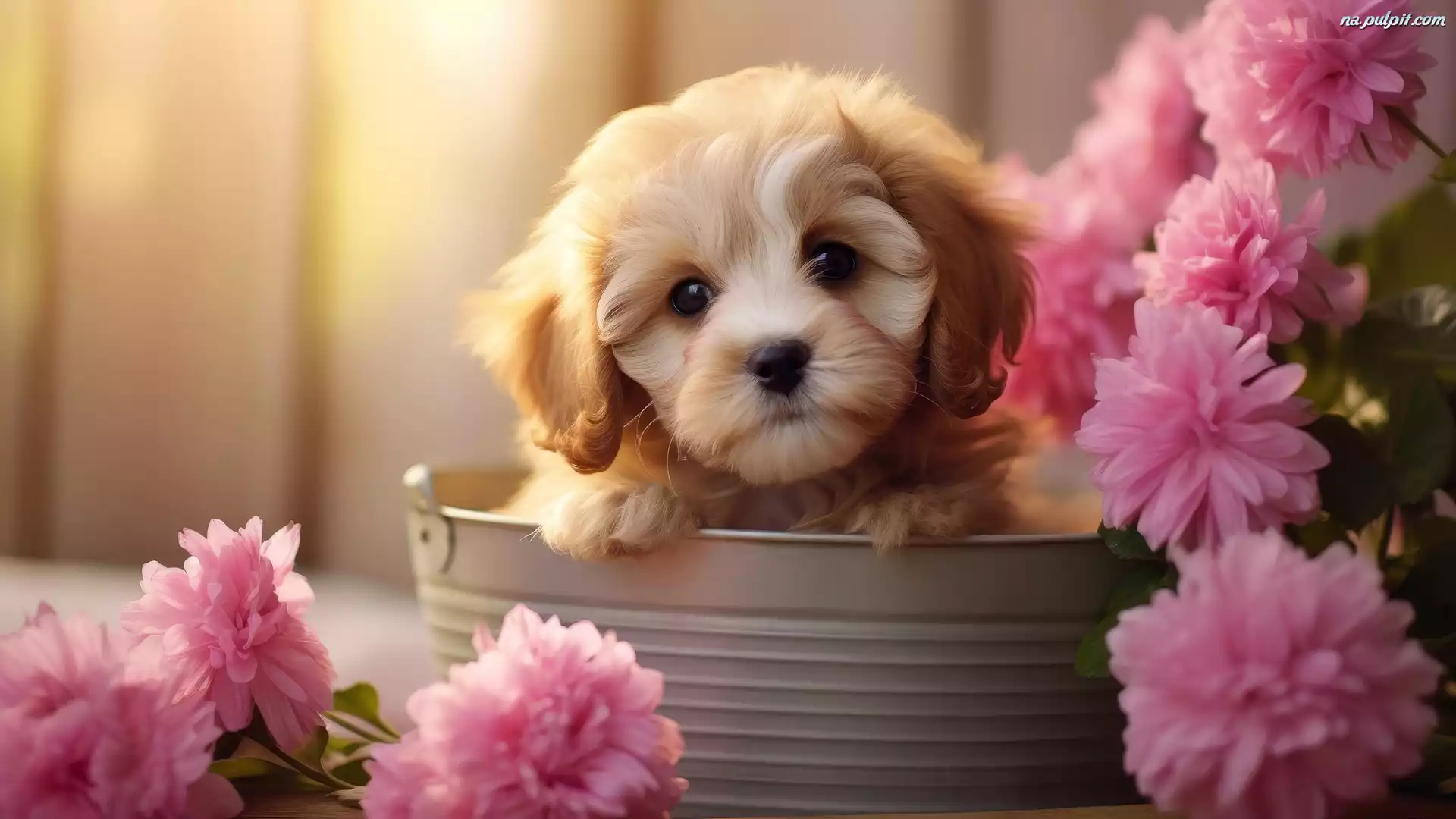 Pies, Mordka, Kwiaty, Szczeniak Na Pulpit