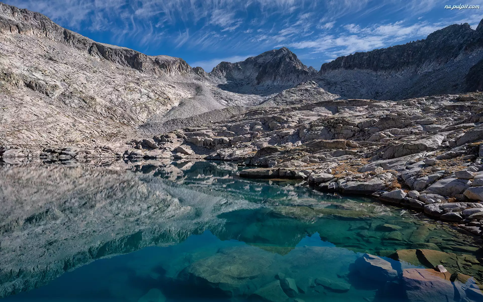 Szczyt Pico de Aneto, Hiszpania, Pireneje, Masyw Maladeta, Góry, Jezioro