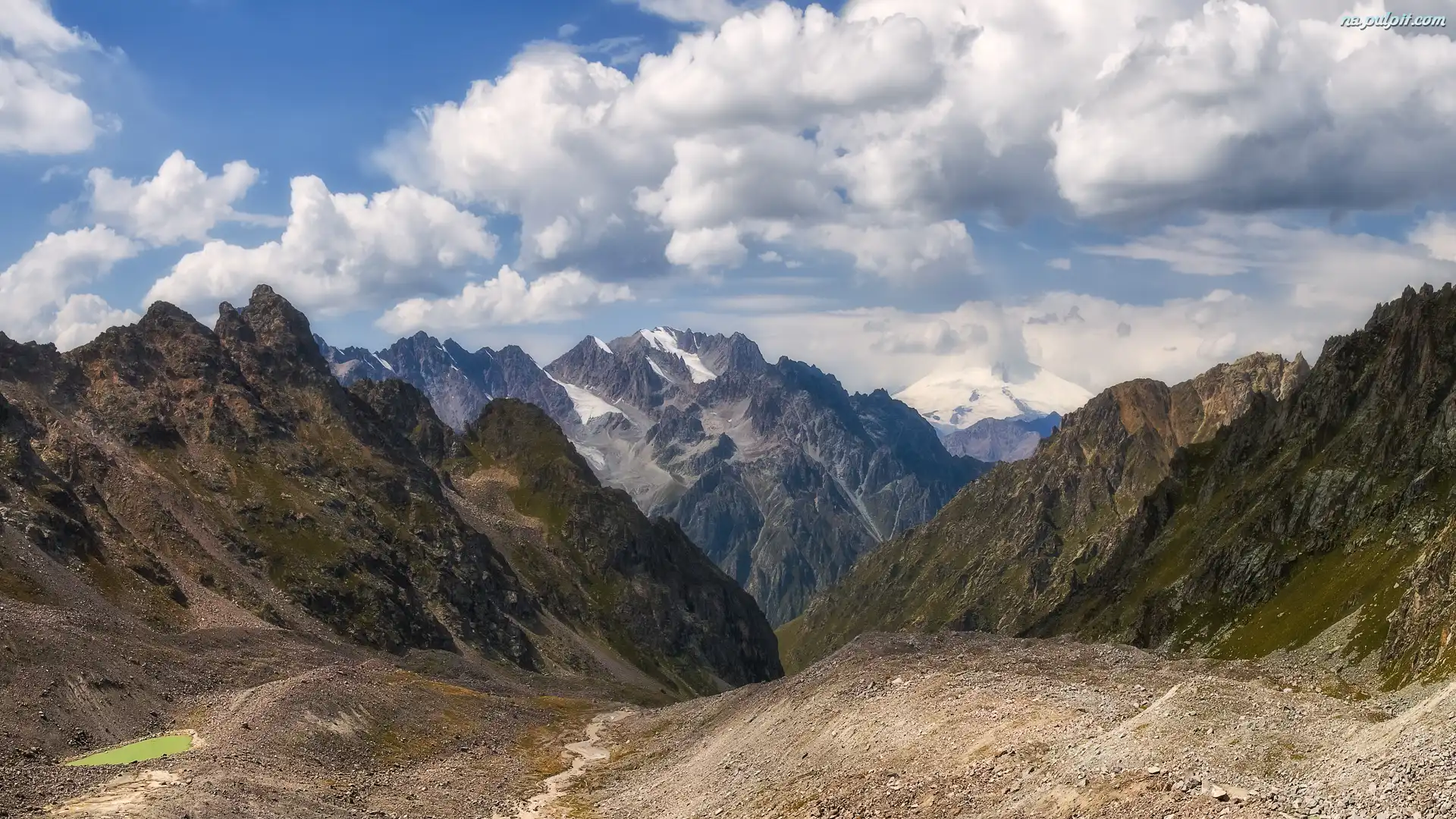 Chmury, Kaukaz, Szczyty, Kabardo-Bałkaria, Rosja, Góra Kullumkol, Góry, Góra Elbrus Na Pulpit