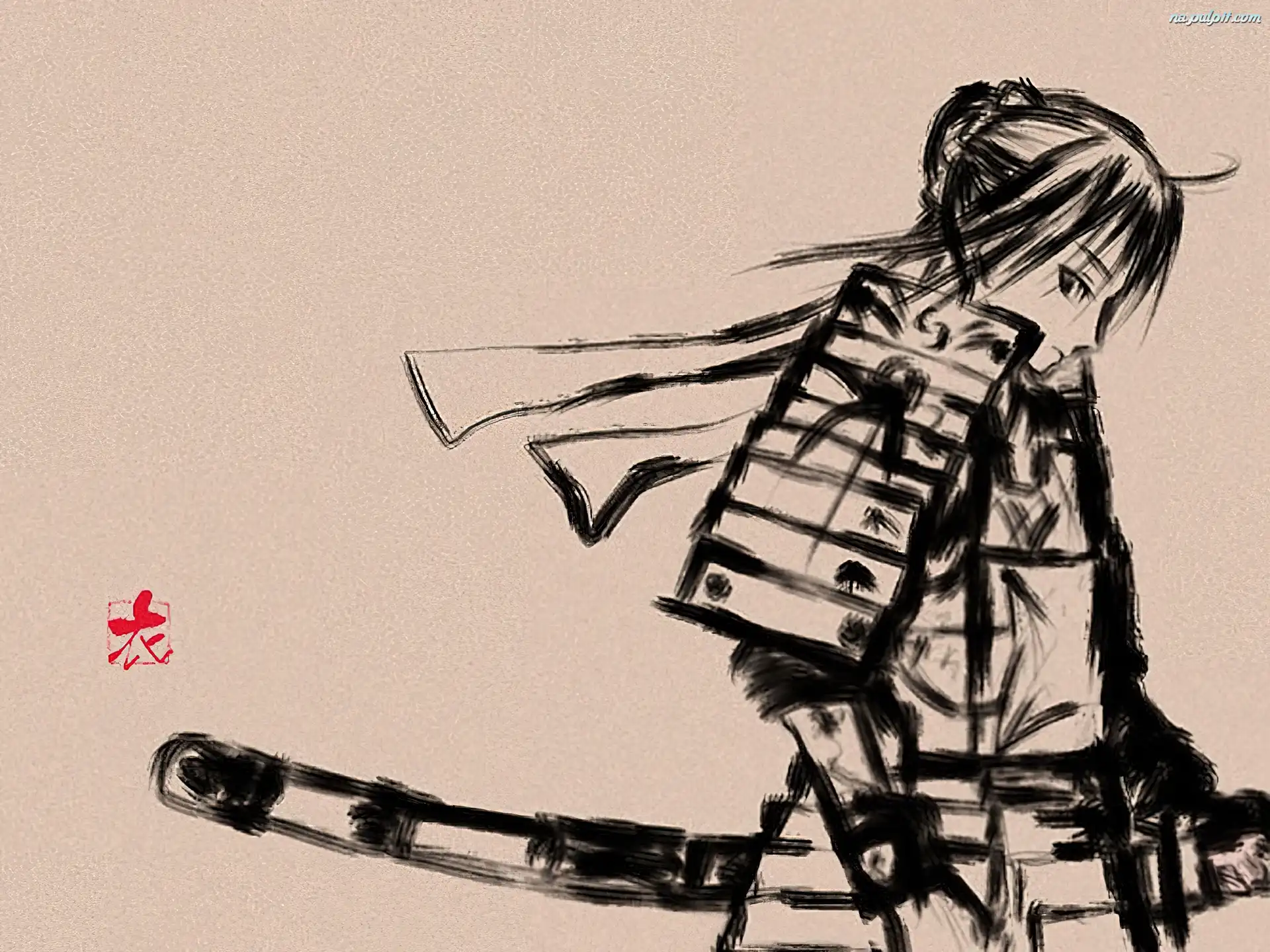 szkic, samuraj, Fate Stay Night, kobieta Na Pulpit