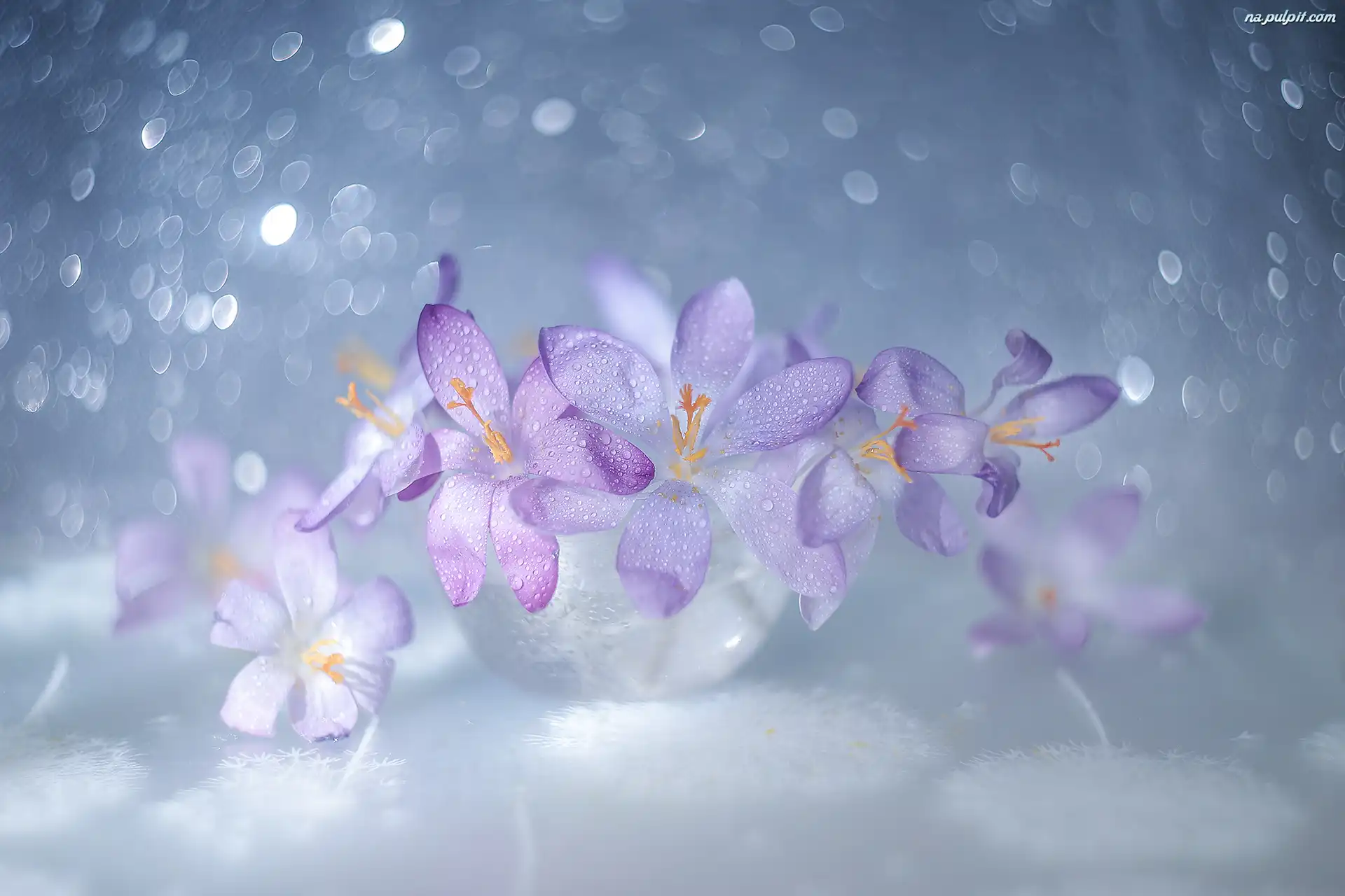 Naczynie, Krokusy, Kwiaty, Szklane, Fioletowe, Bokeh Na Pulpit