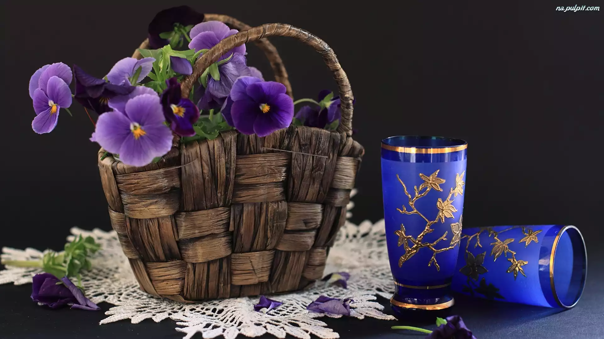 Szklaneczki, Fioletowe, Koszyk, Bratki