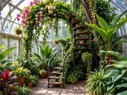 Schody, Szklarnia, Weranda, Rośliny, Kwiaty Na Pulpit