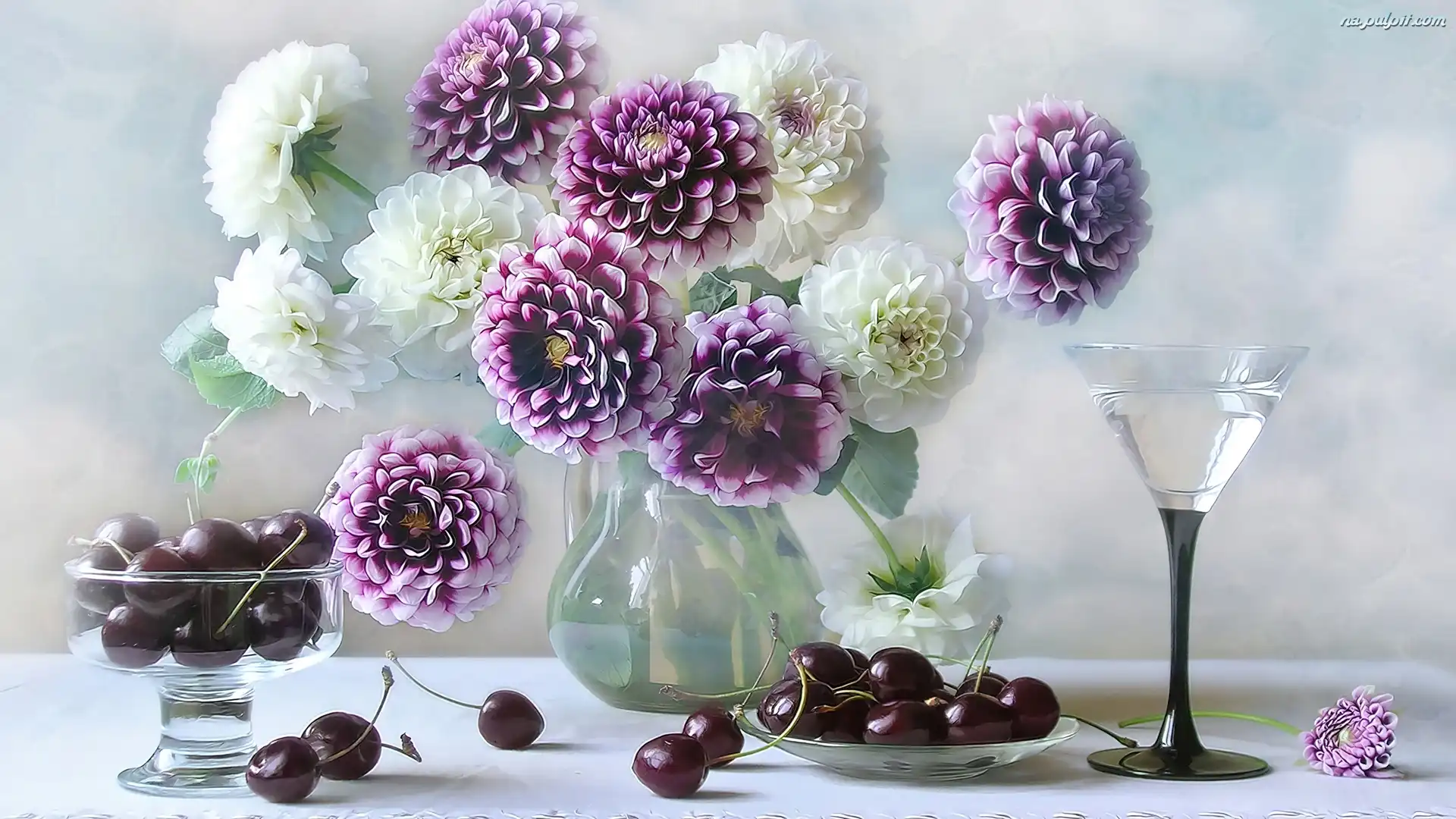 Szkło, Dalie, Piękne, Czereśnie Na Pulpit