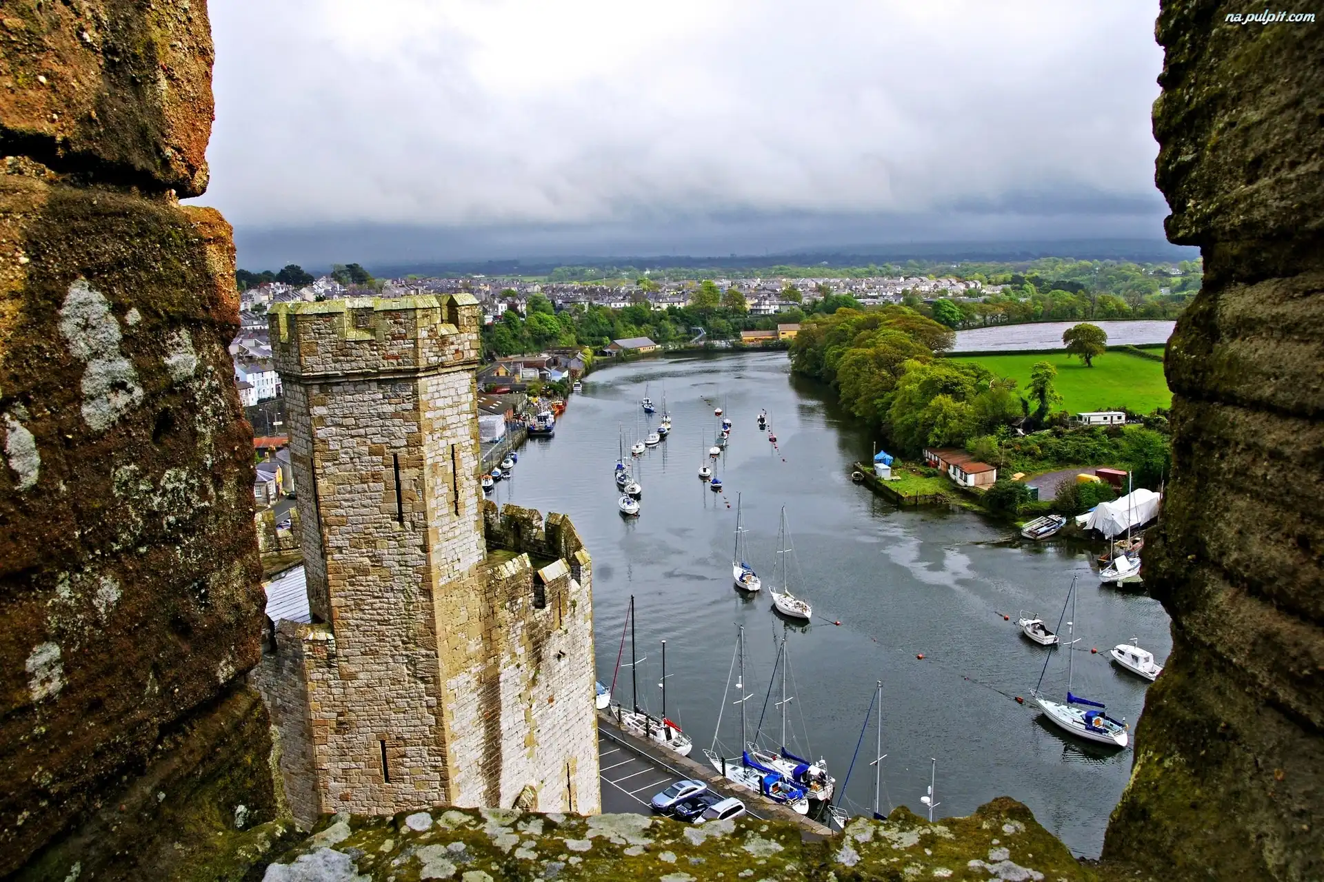 Szkocja, Krajobraz, Rzeka, Zamek Caernarfon, Walia Na Pulpit