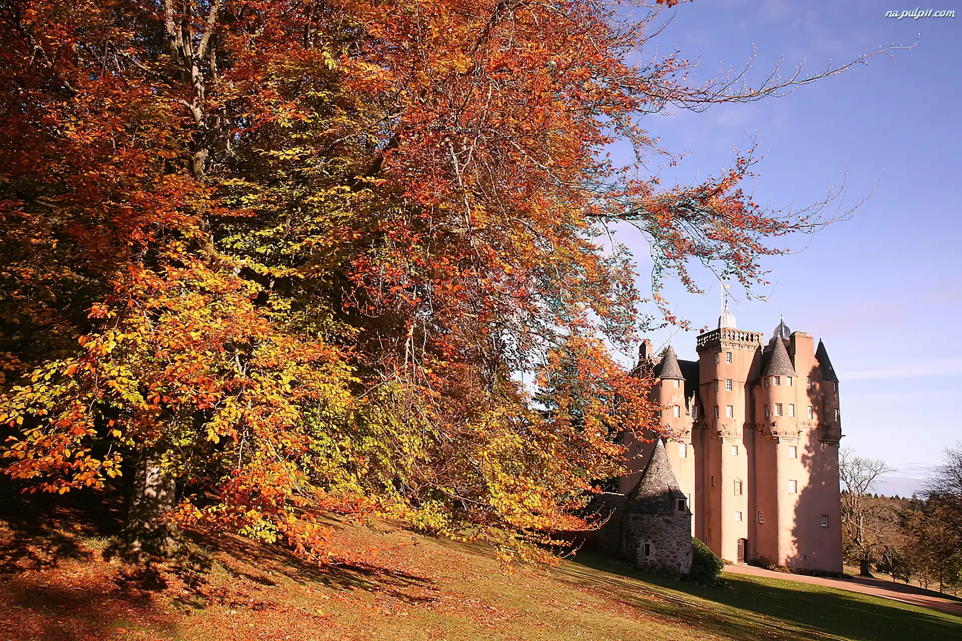 Szkocja, Zamek, Drzewo, Jesień, Craigievar Na Pulpit