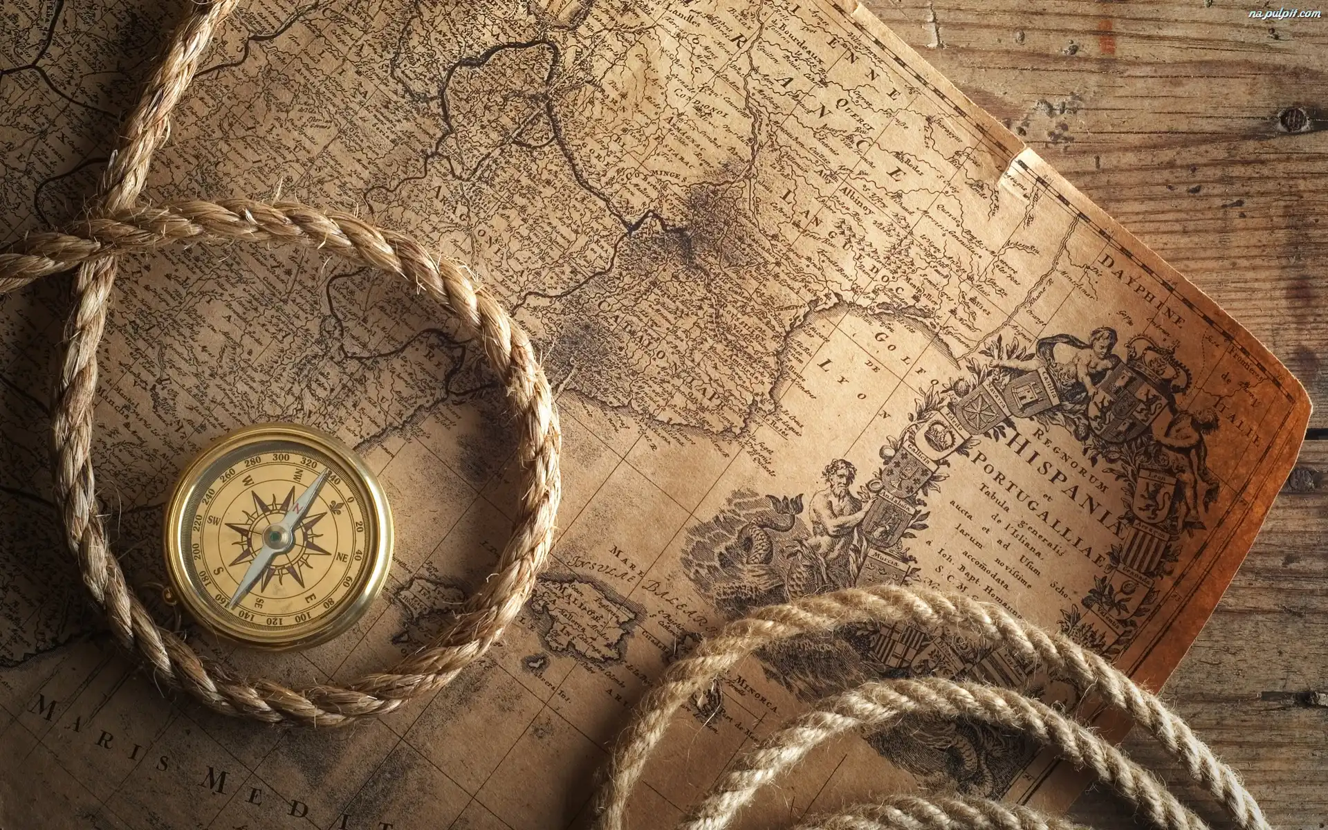 Sznur, Mapa, Stara, Kompas Na Pulpit