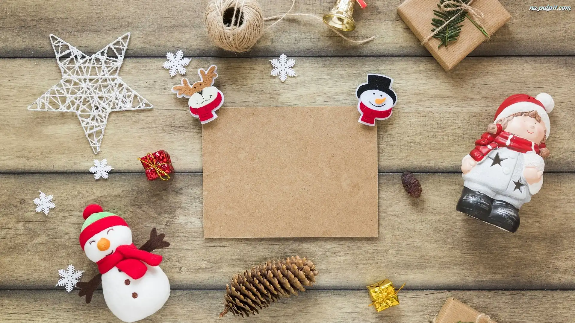Bałwanek, Gwiazda, Śnieżynki, Szyszki, Prezenty, Świąteczne, Dzwoneczek, Kartka, Sznurek Na Pulpit |