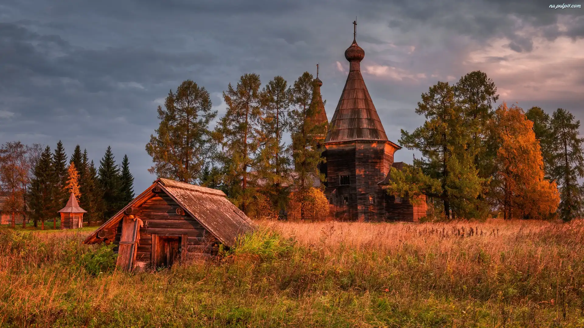 Drzewa, Rosja, Cerkiew, Szopa, Obwód archangielski, Łąka Na Pulpit